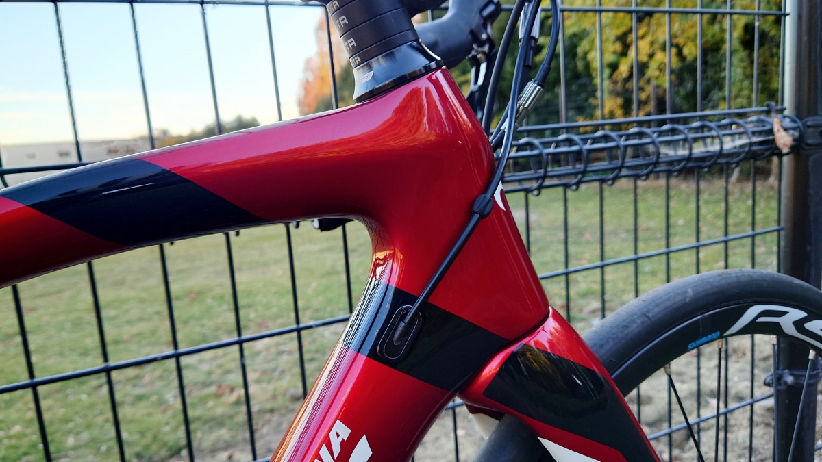乗り心地の良さに振っている分もあり踏み込んだ時の感覚は少し物足りないような感じもしましたが、レース強度ではなくサイクリングでの使い方だと十分な剛性感。ハイエンドレースバイクのようなパキッとした感覚はないですが、休日に少し速く走りたいなという方にとっては剛性感と快適性とバランスはよく感じます。