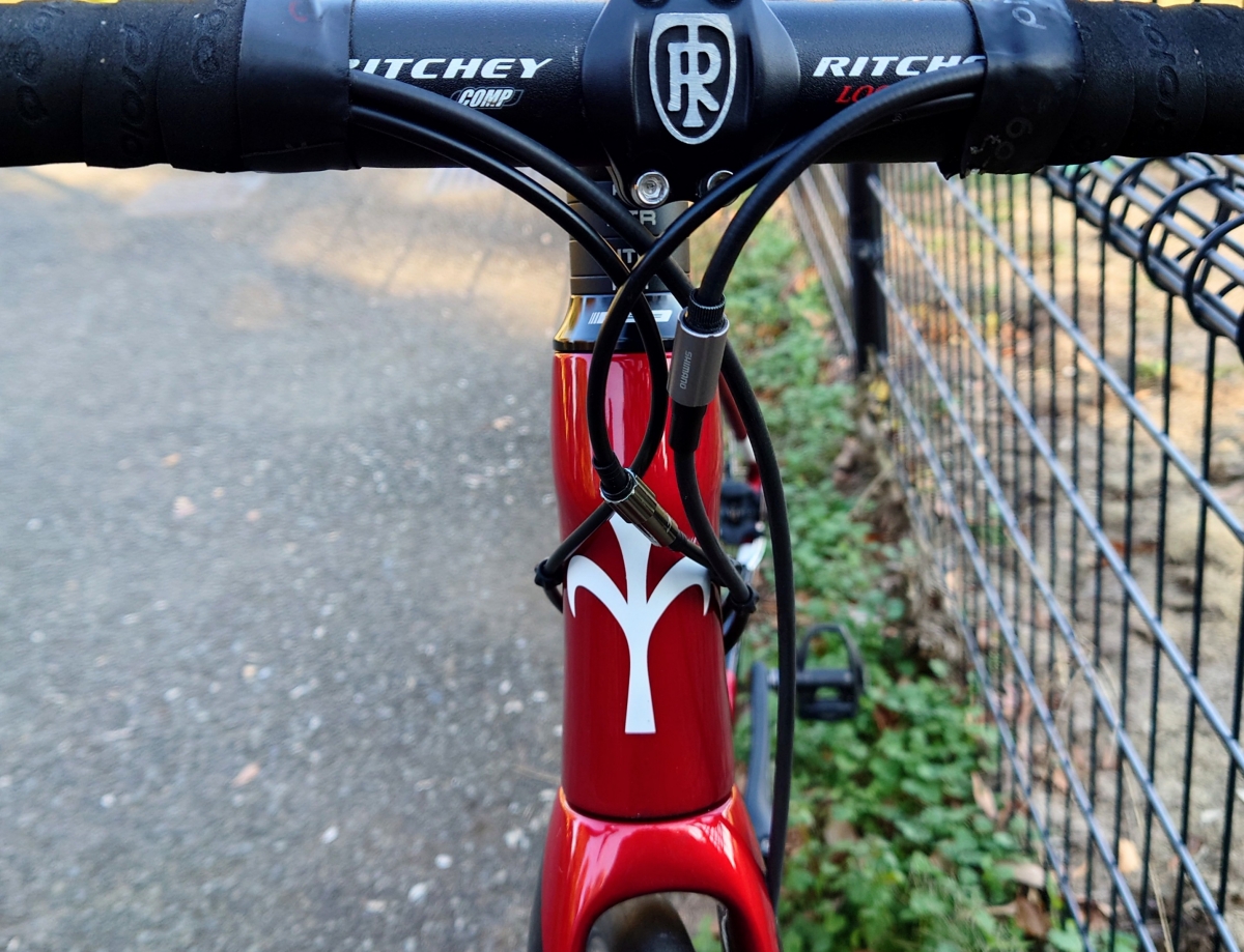 あとはカスタムの定番であるDi2化。これをすると4本のワイヤーが2本に減ります。初めからDi2モデルを買うという選択肢もありますが105 DISC 仕様を買ってあとからアルテグラDi2などに乗せ換えてもいいかもしれないですね。