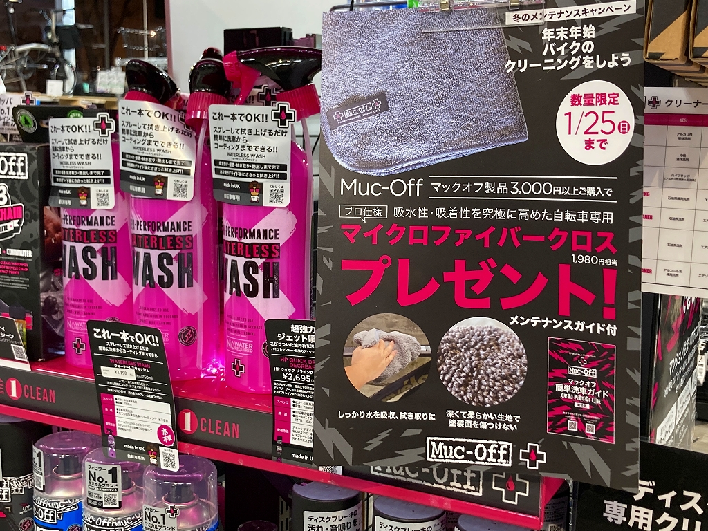 今ならMUC-OFF製品を¥3,000以上お買い上げでマイクロファイバータオルが付いてくるキャンペーンを実施中ですのでさらにお得です。