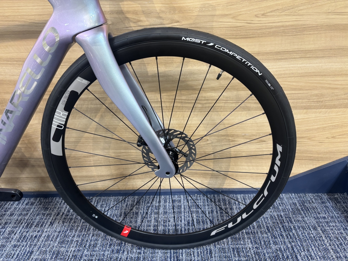 ホイールにはFULCRUM RACING 800 DBを採用し、タイヤはMOST COMPETITION 700×30cが採用されています。純正でこれだけ太いタイヤが入っていますが走りの軽さは損なわれず、むしろ安定感のある走りになっています!