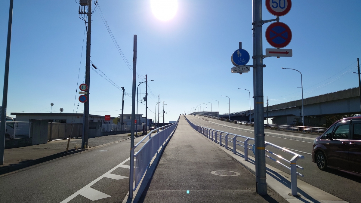空港手前の橋が意外と上る…。