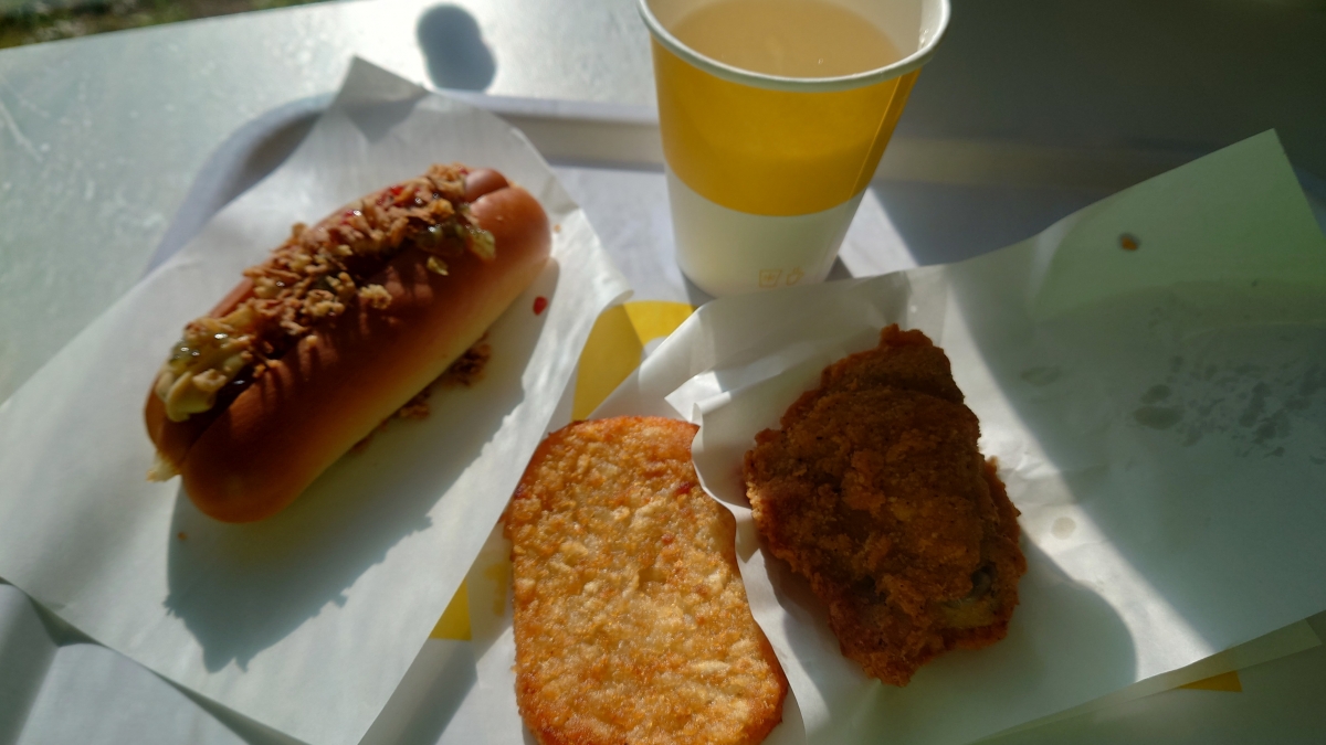 前回はチキンを食べましたが今回はホットドックを二つ。
