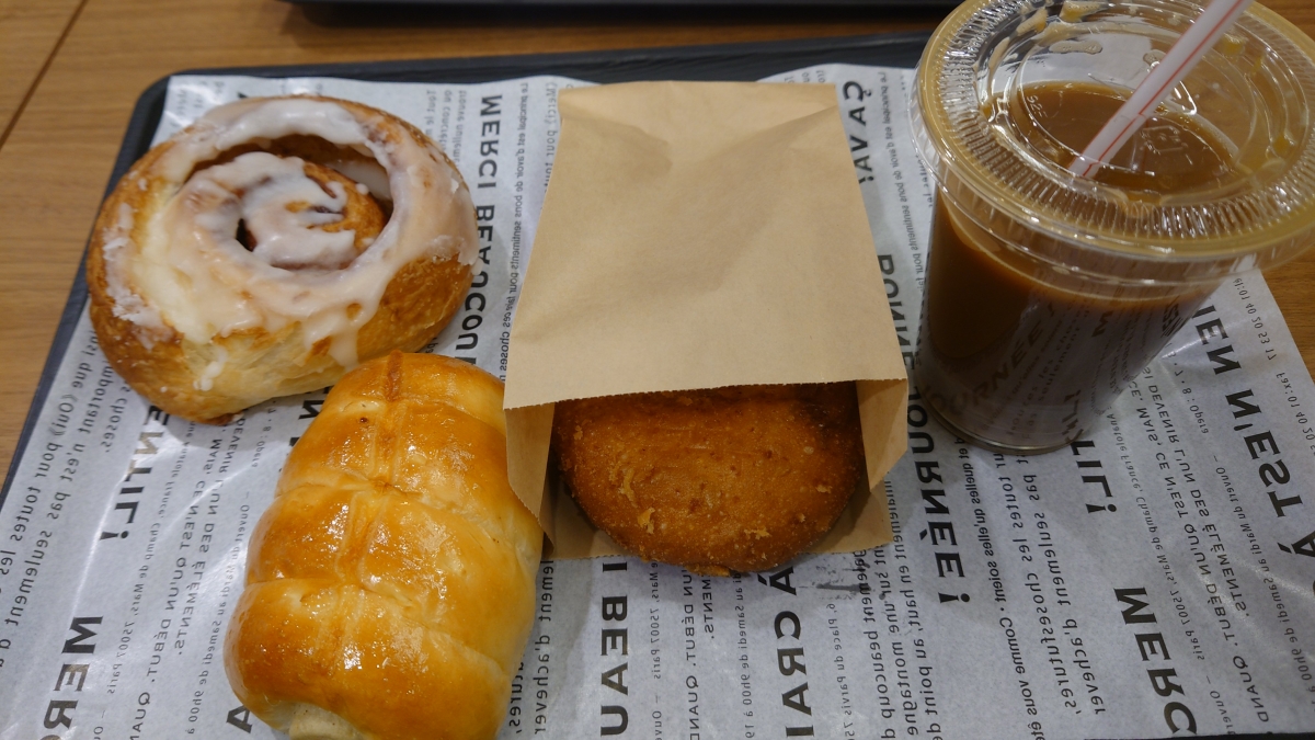 しっかりと補給を。今回もちくわパンと賞を獲得しているカレーパンを。