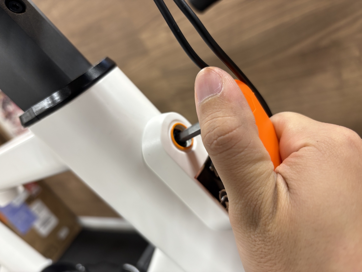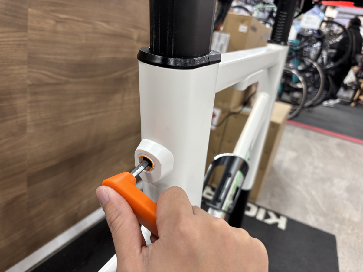 トップチューブ?裏に6角レンチが付いているのでサドル高やハンドル落差、距離からトレーナーとの着脱までこれ一つで出来ちゃいます^^