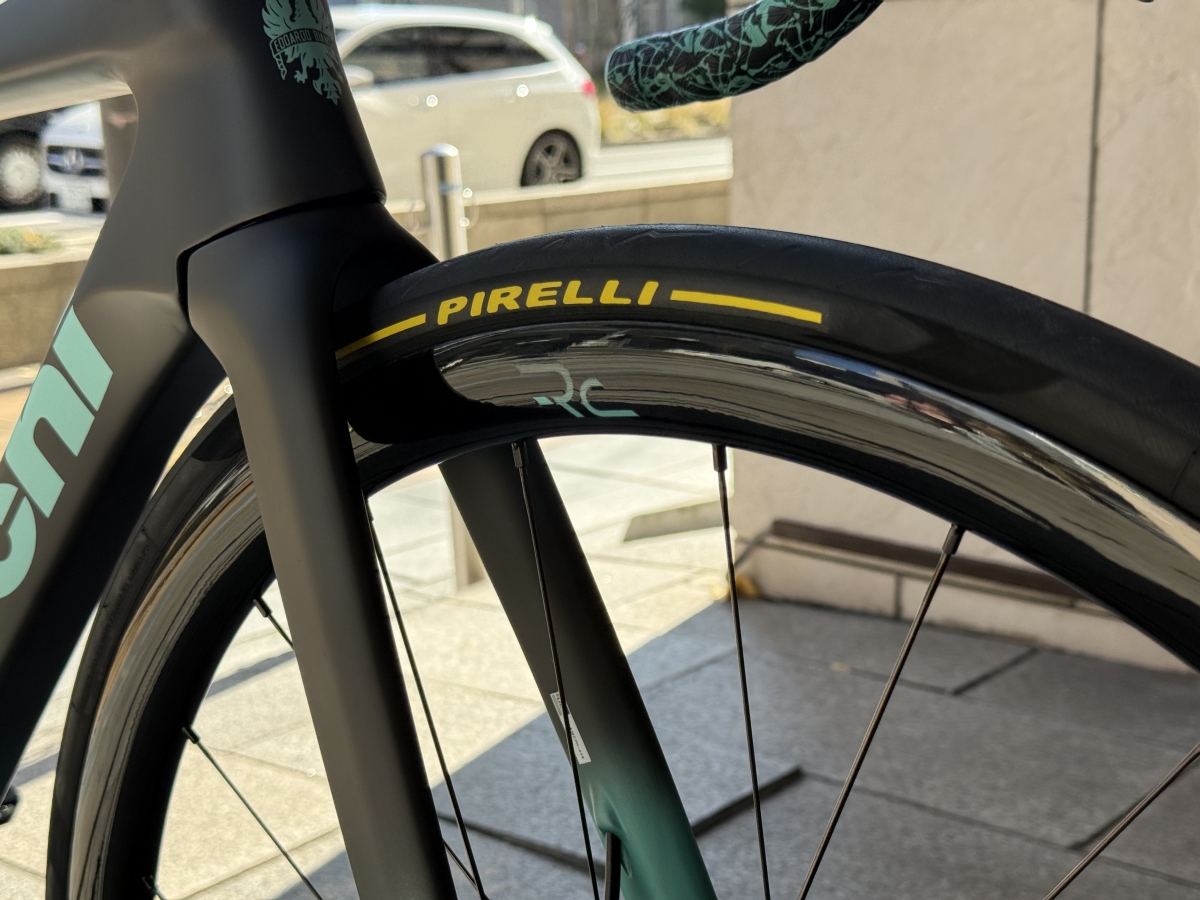タイヤは劣化していたため新しいものをインストール。PIRELLI P ZERO™ RACE COLOR EDITIONを選択。このタイヤはドライ、ウエットともにグリップ力が向上しているのでいろんなシチュエーションで使用できます。また今回はCOLOR EDITIONということで、サイドのロゴ部分のカラーが通常と異なります。”チェレステ”+”イエロー”という最強の組み合わせで抜群にかっこよく仕上がりました。軽量化のためTPUチューブをインストールしています。