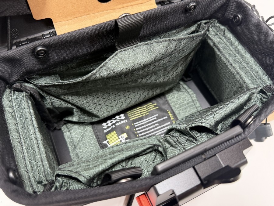 よくあるハンドルバーバッグはジッパーでの開閉などが多かったりしますが、こちらのバッグはワンクリックで開閉することが可能となっているので乗車中でも簡単に中の物を取り出すことが出来ます。