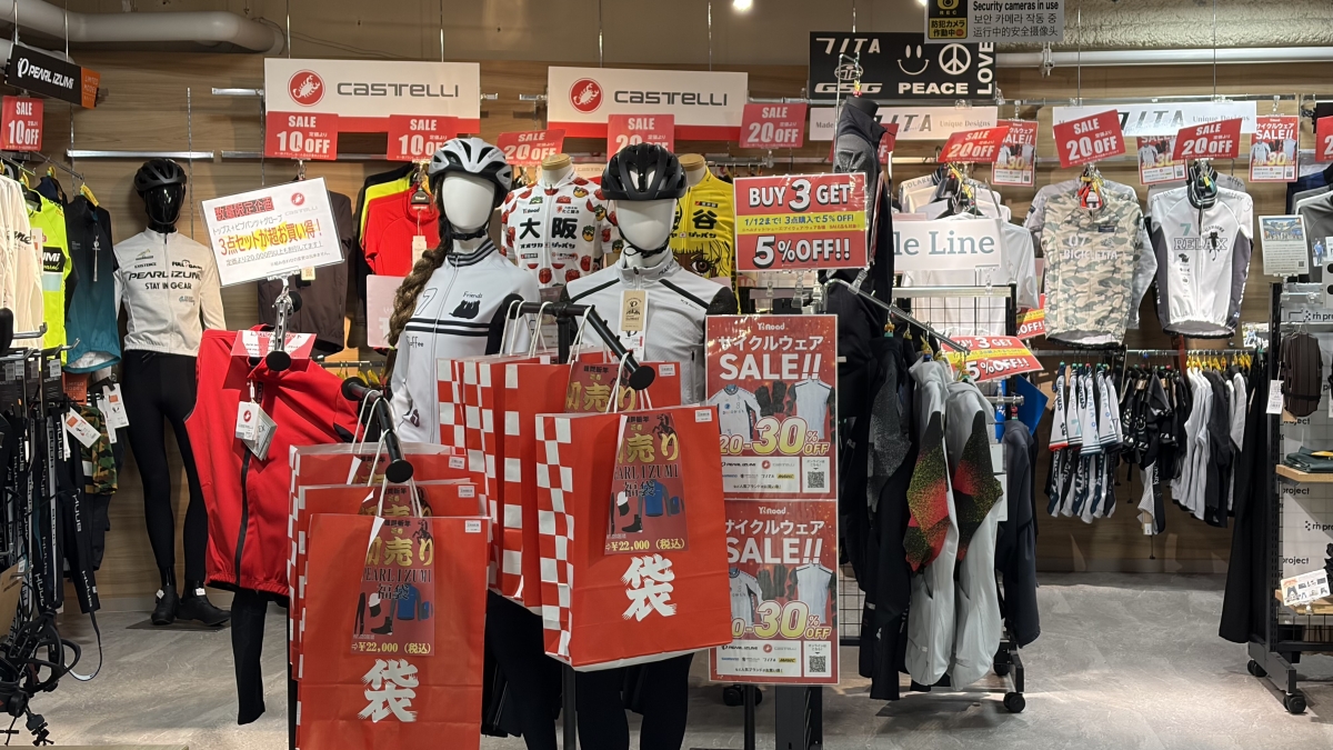 ジャケットやタイツ、ヘルメットなどサイクルウェアもお買い得です!