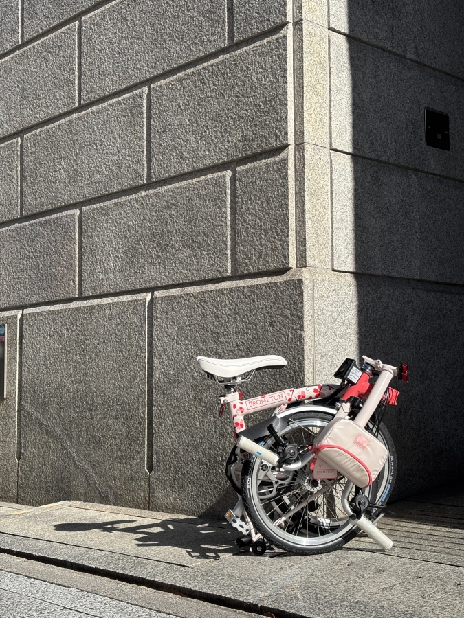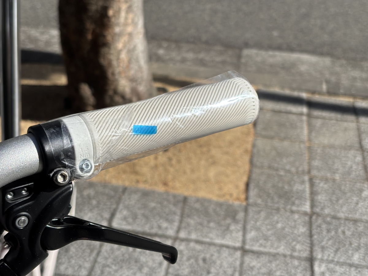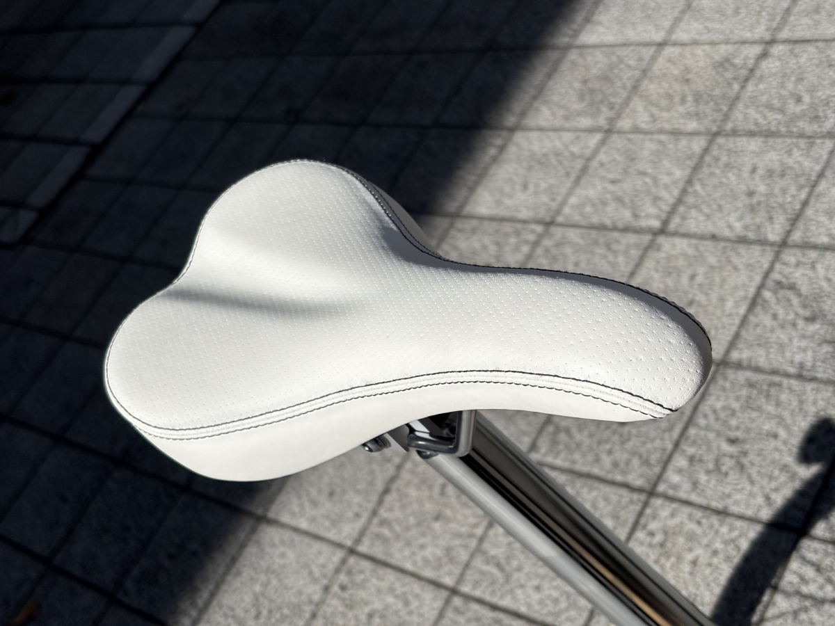BROMPTON純正には珍しいサドル・グリップはホワイトカラー。