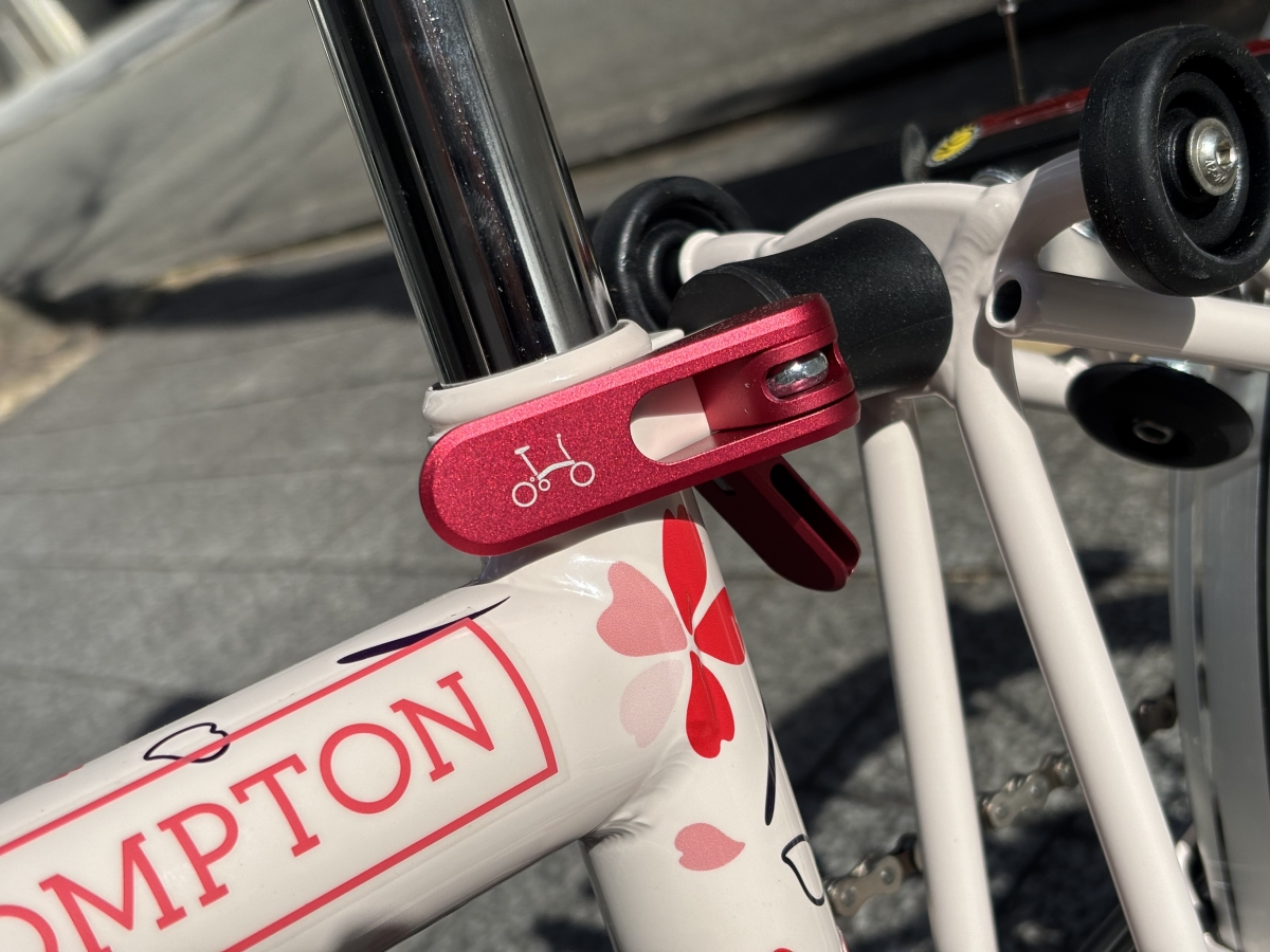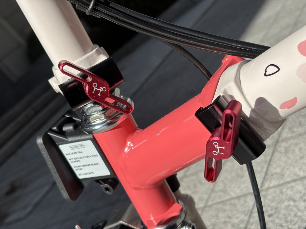 ヒンジクランプレバー・リアフレームクリップは濃い桜色。