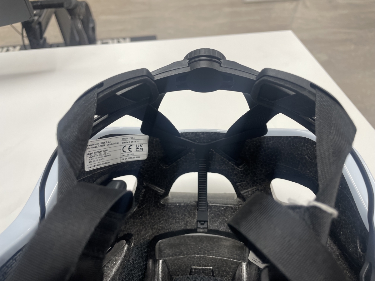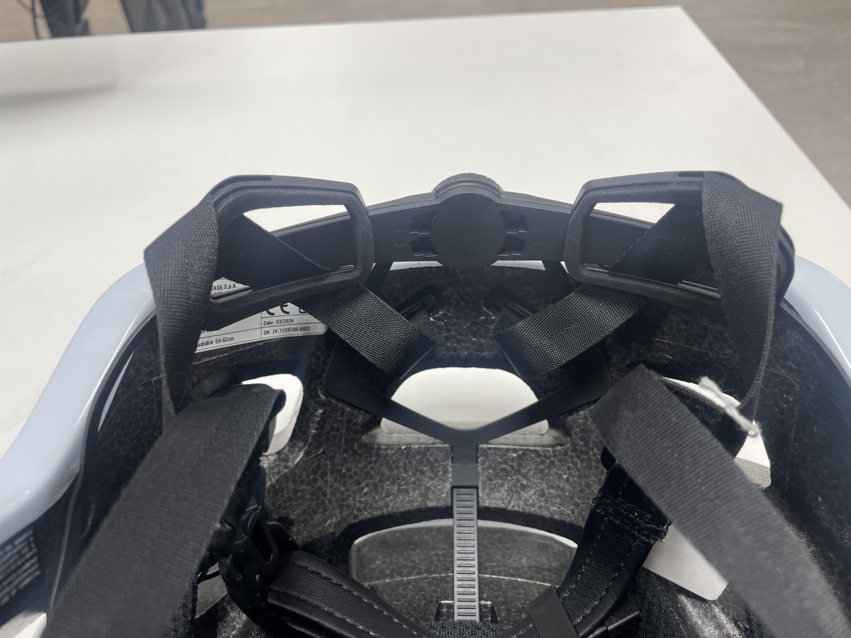 KASKのヘルメットの特徴で後ろの部分がこんなにも大きく動かせ簡単に調整ができます。被ると深くフィット感があり快適です。女性の方も髪を束ねられた際、間から髪を出せるのもポイントですね