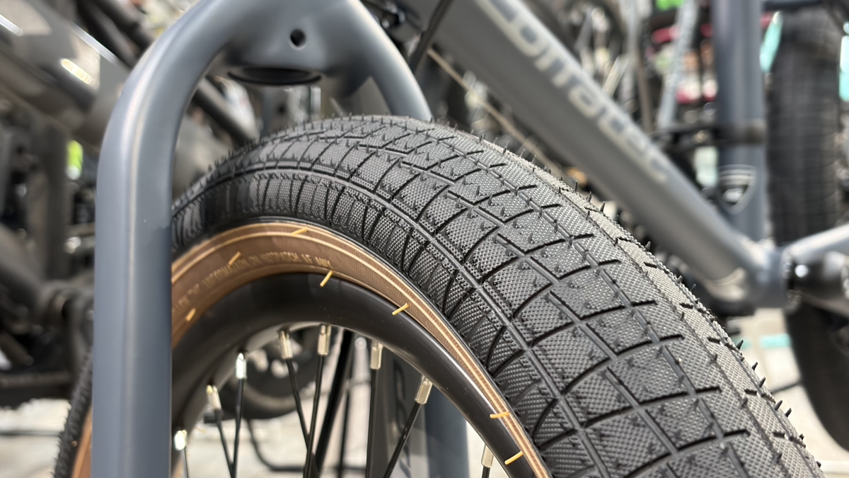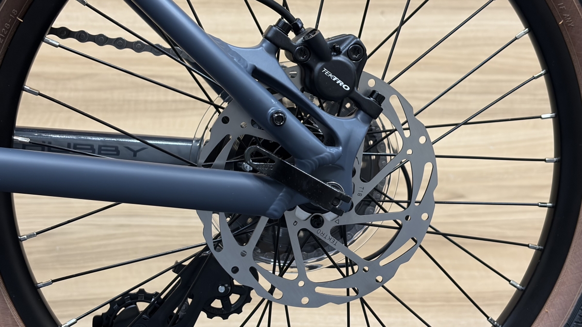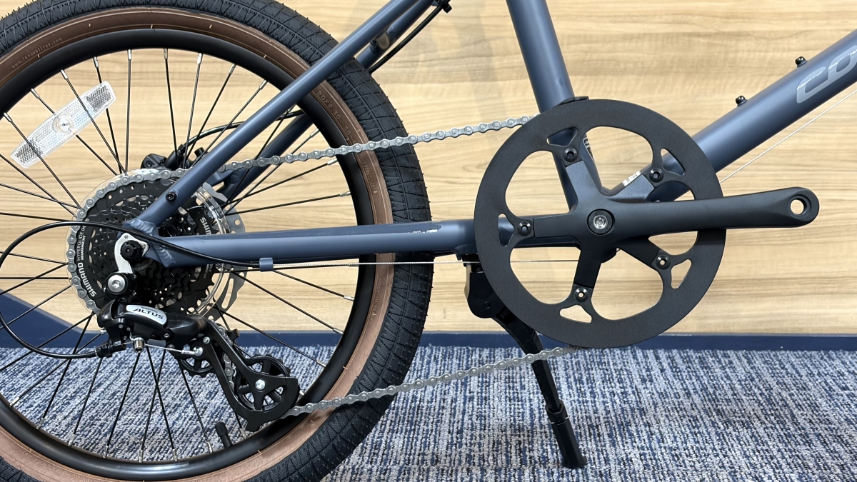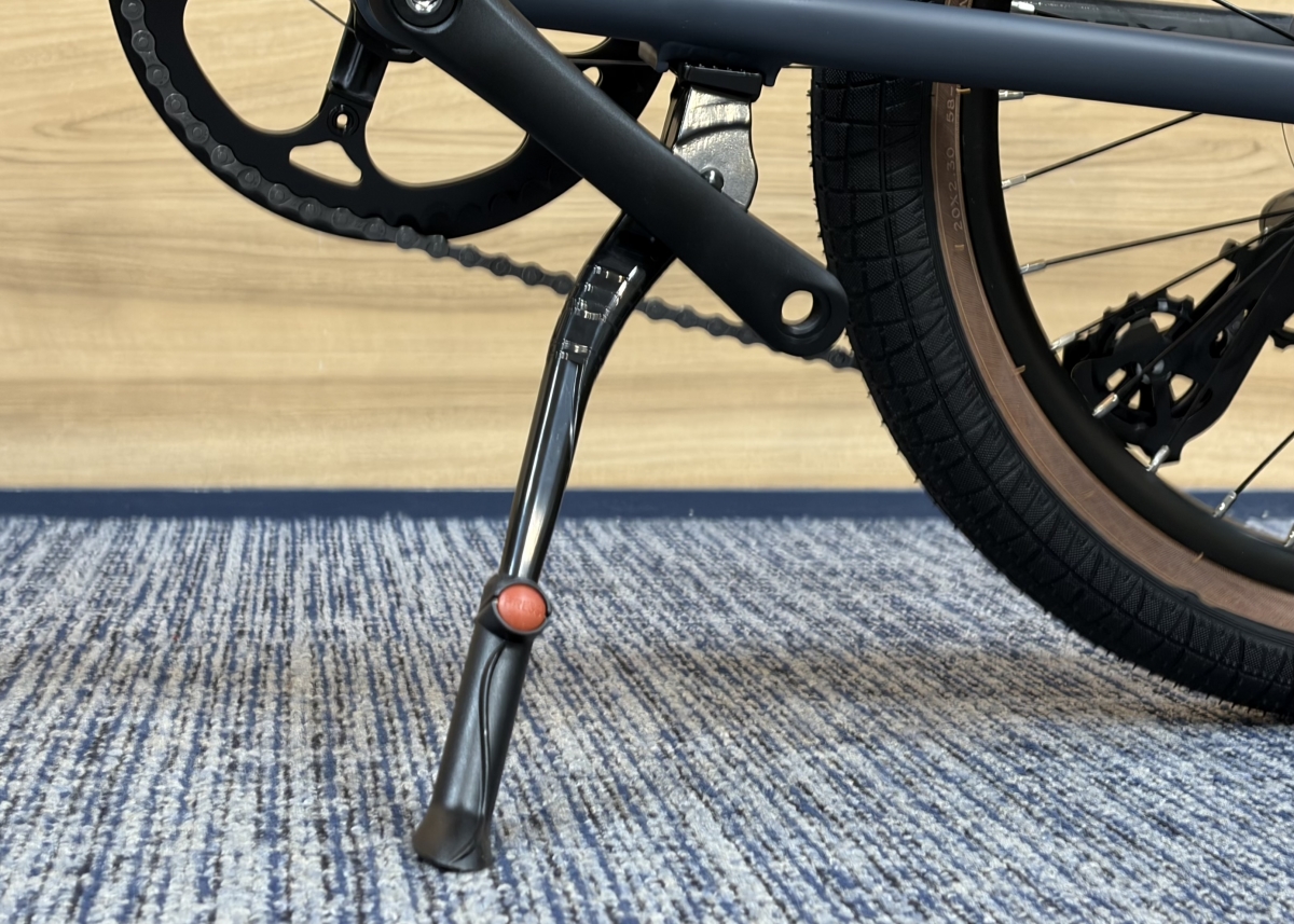 ミニベロというとロードバイク並みに細いタイヤを履いたものが多いですが、こちらのバイクは2.30というマウンテンバイク並みに太いタイヤを履いています!