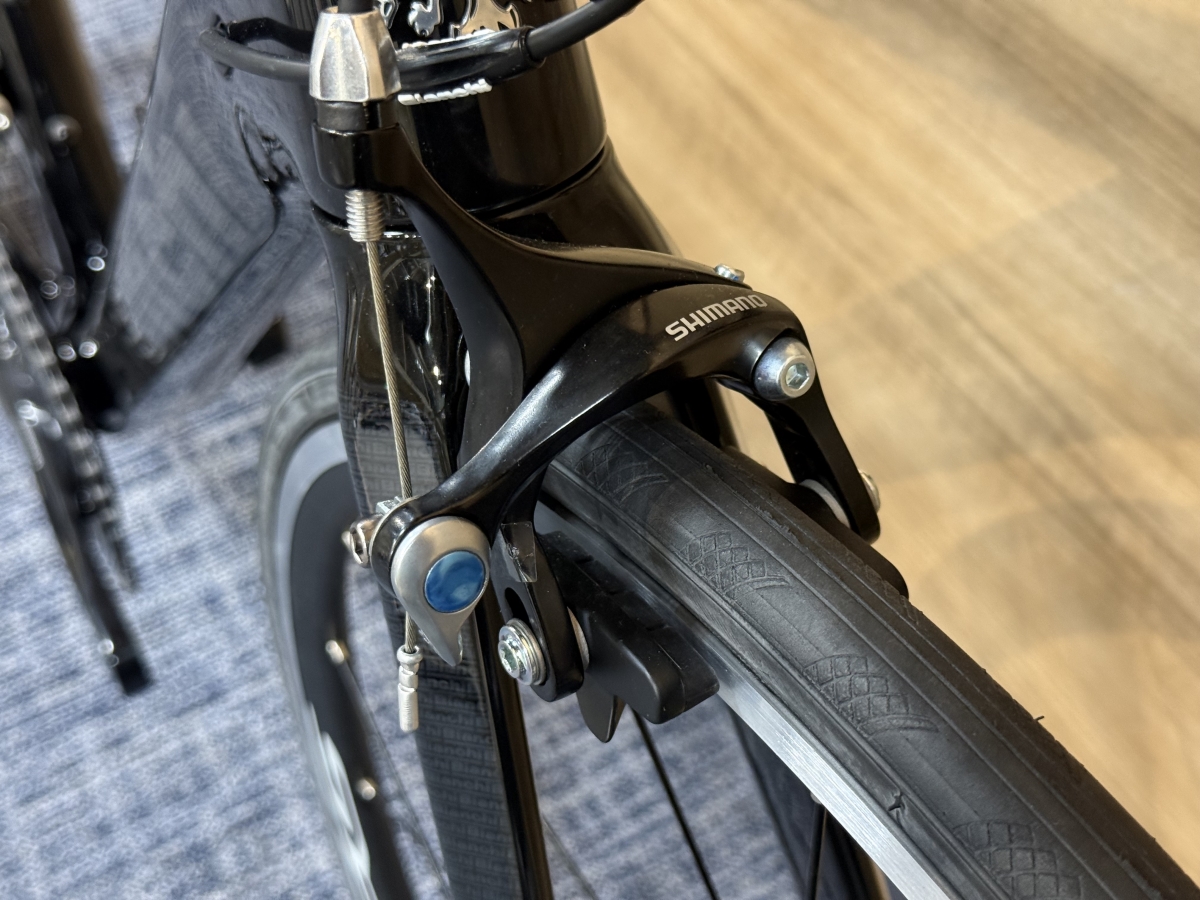今となっては珍しい車体となってしまったリムブレーキ仕様のカーボンフレーム車体です。1台限定のアウトレット車体でご用意しました。サイズ44と女性の方でも乗りやすいサイズ感になっていると思います。