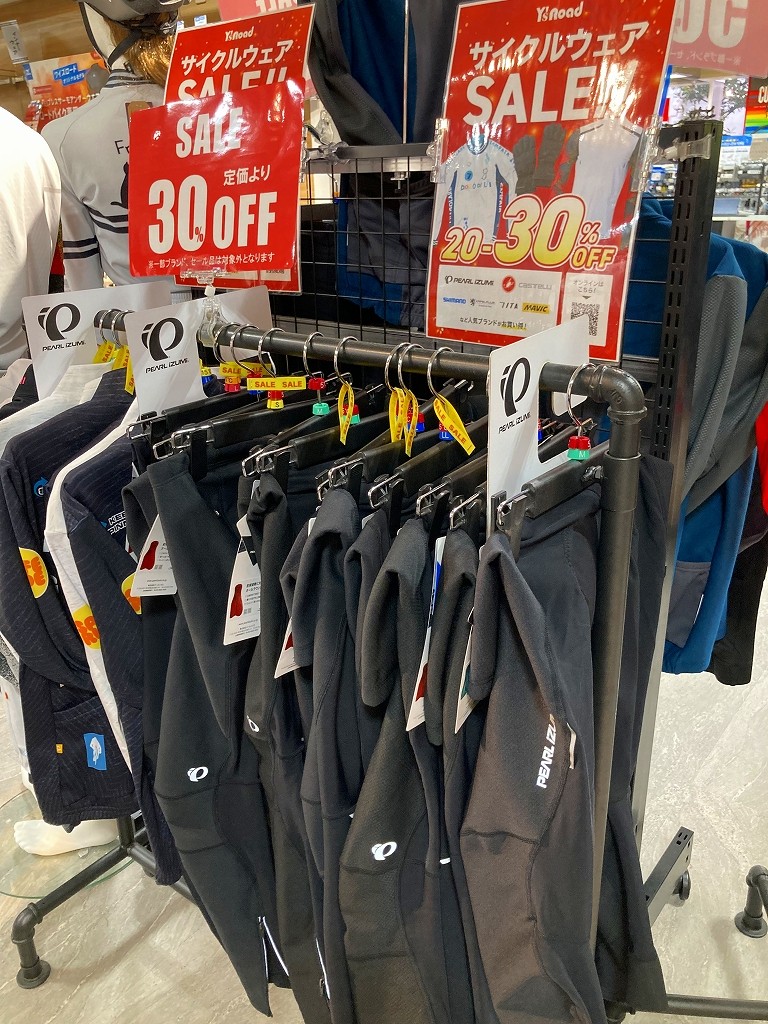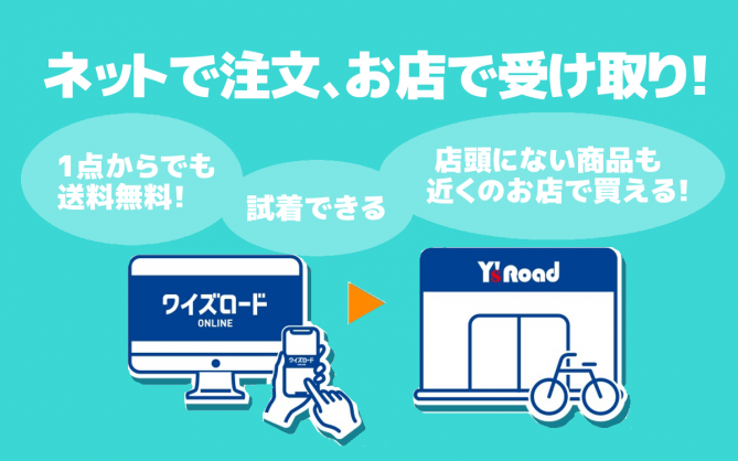 ジャケット・ジャージ・タイツ・シューズ・ヘルメットなども店頭に在庫がないサイズはワイズロードオンラインからご注文→店舗受取にしていただくと、お店に届いた商品を試着が可能です(インナーやシューズカバーなど試着できないものもございます)。もしサイズが合わなければキャンセルも可能ですので、気になる商品があるけどサイズ感が分からない…という場合にはぜひご活用下さい。