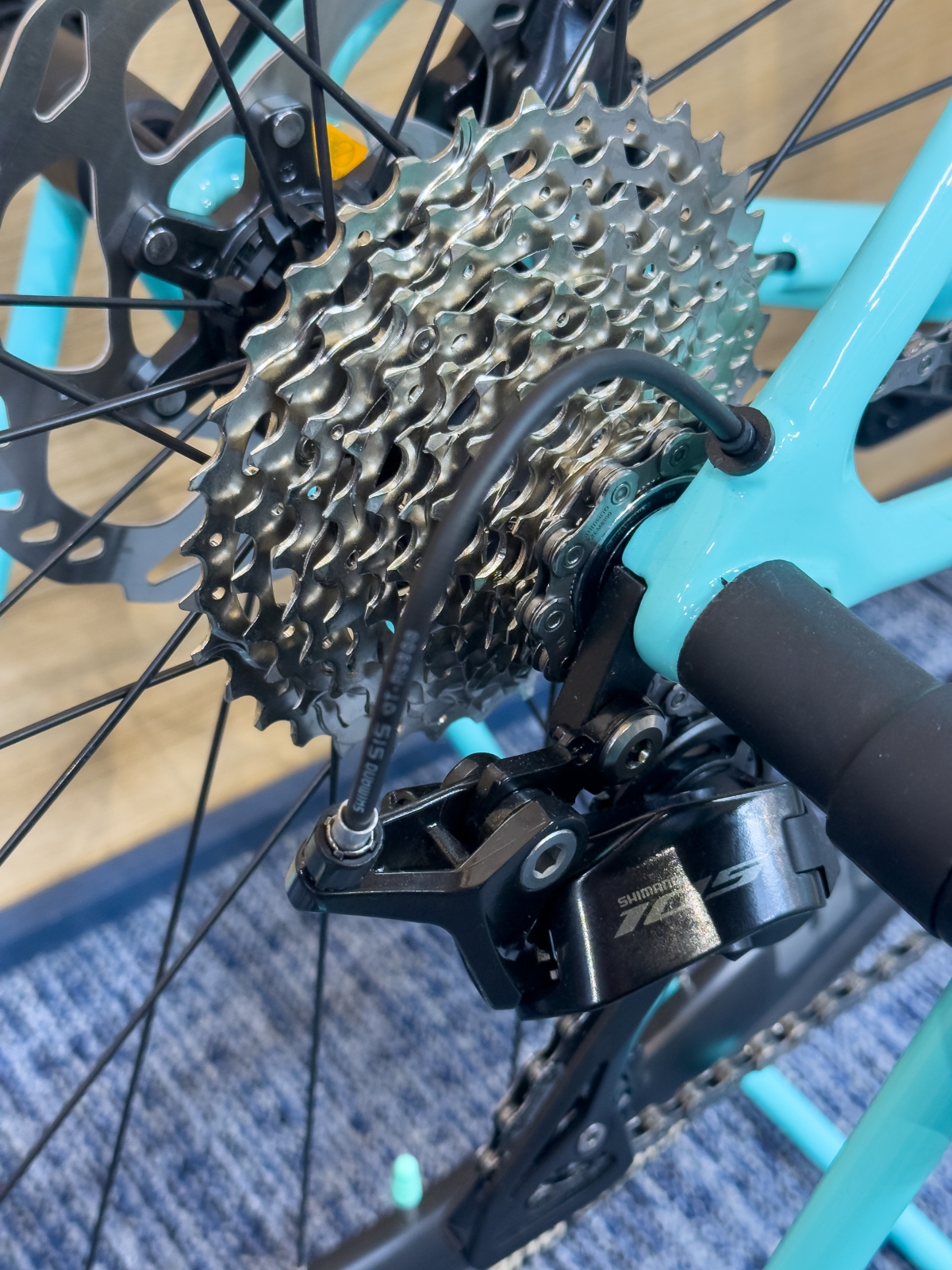 スプロケットは11-34Tがついている為ヒルクライムでもへっちゃらな仕様になっております。それでも苦手な方は11-36Tに換装することも可能ですのでお気軽にご相談下さいませ。