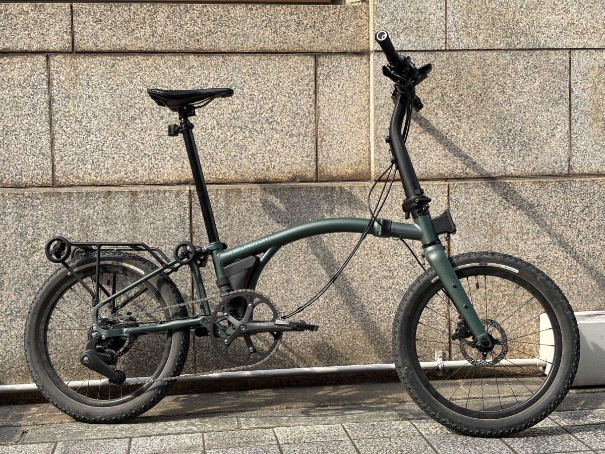 BROMPTONならクラシックなテイストが似合うと思いBLOOKSを移植したものの、オフロードに行くとカンビウムではひやりとするシーンやサドルの固さを感じることもあり「早急に替えねば」と思っていた矢先ERGONを使用させていただく機会があり今回に至りました。