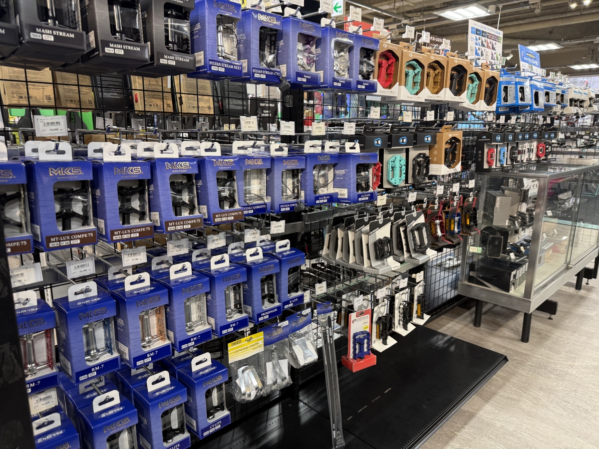 フラットペダルからビンディングペダルまで幅広く在庫取り揃えております。お気軽にご相談ください。