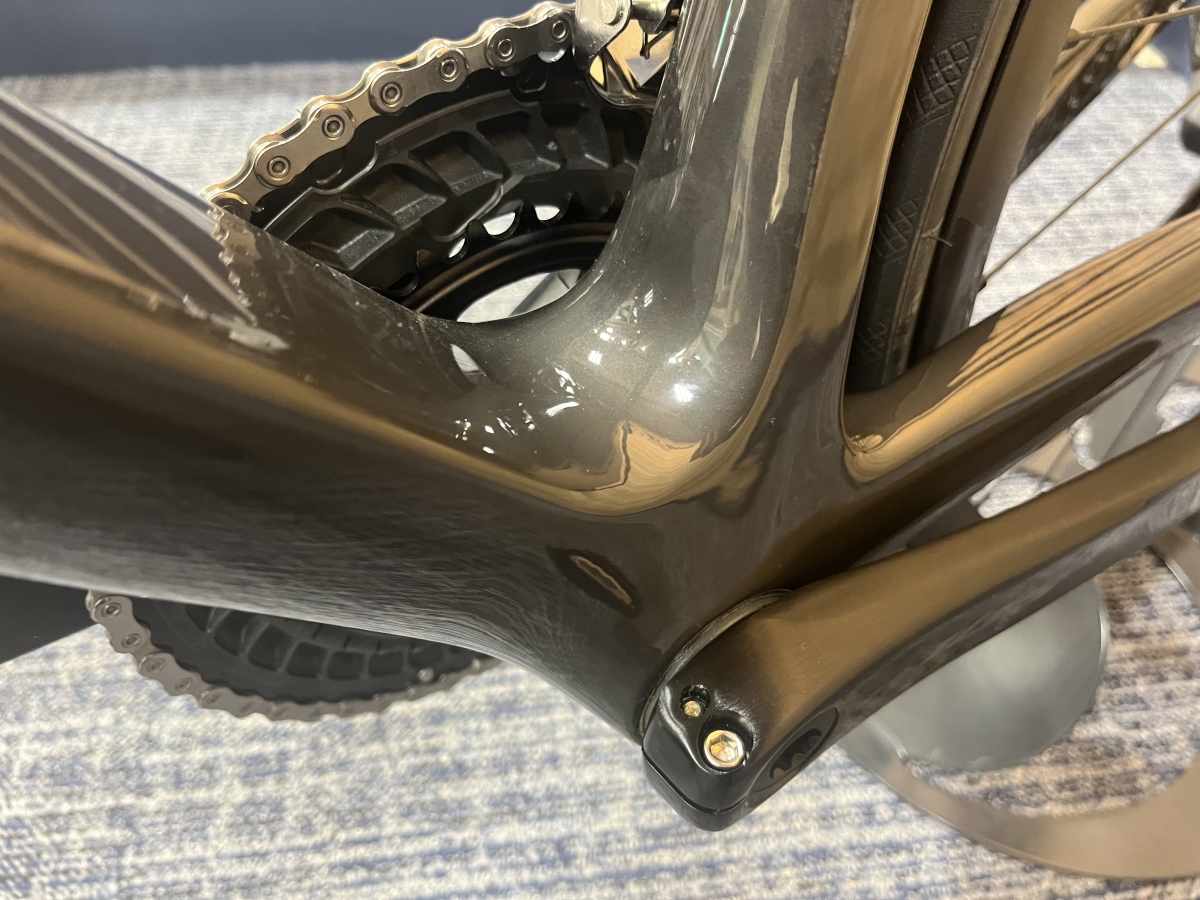 変速機はSHIMANO 105Di2が搭載されています。電動ならではの滑らかでスピーディーな変速が特長で、煩わしい変速調整もスマホを介して、手軽に行うことが出来ます。SHIMANO Di2は変速モードをアプリを使用して自分好みにカスタマイズすることも可能です。