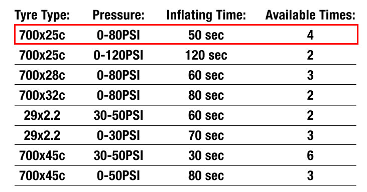 700×25cのタイヤで80psi充填テストを行い、他の電動ポンプと比べ、マックオフが最も早く空気を入れることができたそうです。