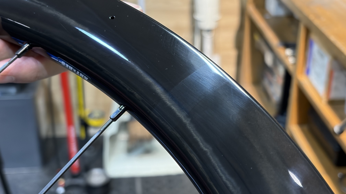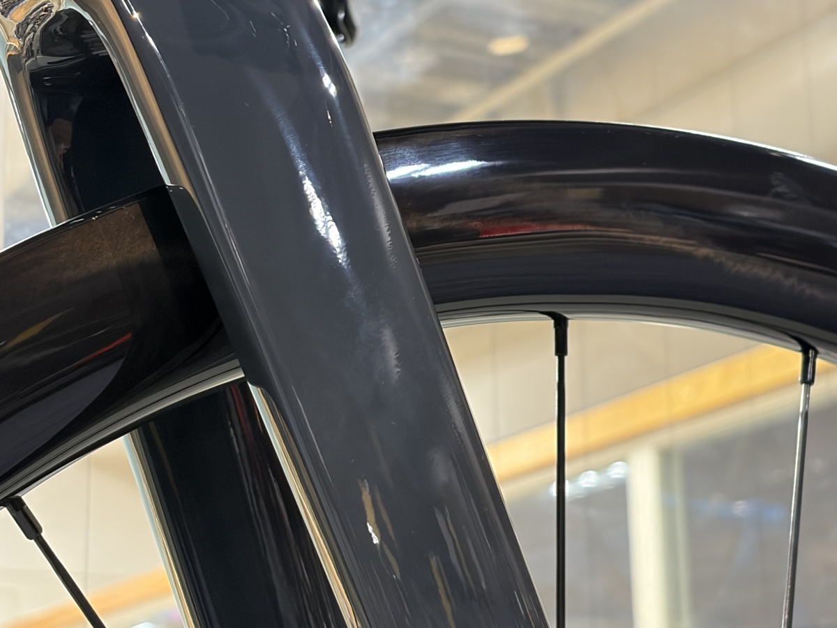 今回ご案内するバイクには、リムハイト45mmのカーボンホイールが最初から装着されています。