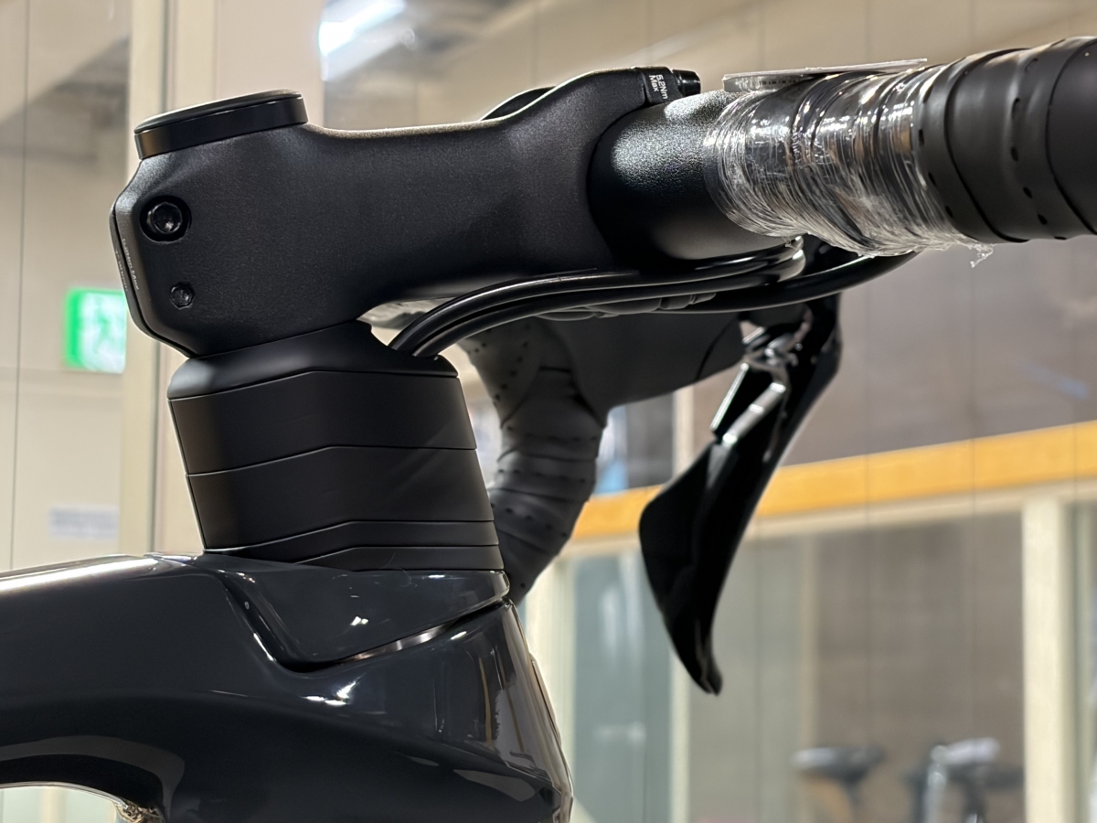 ケーブル類はステムの下を這ってフレーム内部に入っていく構造となっており、見た目がすっきりとして美しいですね。