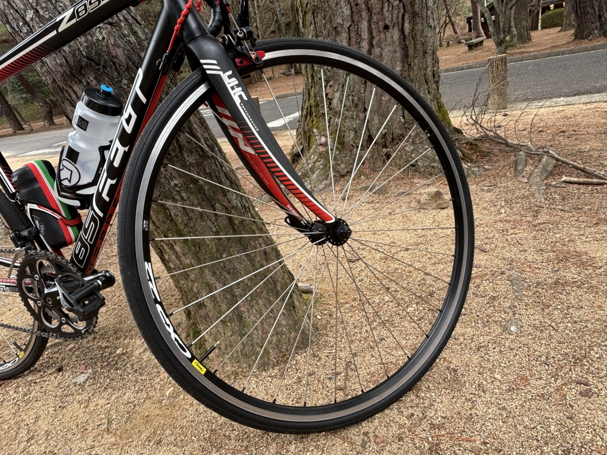 まずお話しますのが転がり抵抗について感じたこと。最近普段使いのタイヤを28cに変えたところで25cを使用したこともあり、よく転がるタイヤだと感じました。トレッドパターンも変更されDRY/WETともグリップ力の向上し、平坦では30km/h台中盤までは特にスイスイ進む感覚がありました。これはこれら2つの新技術によるところが多いのではないかと感じます。