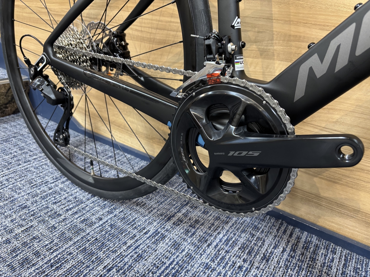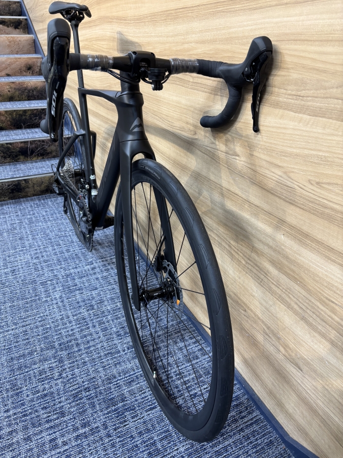 今回入荷してきましたのはREACTO 4000というグレードとなっております。足当たりの良い少し剛性を落としたグレードのフレームに105機械式12速のコンポーネントをアッセンブルしたグレードです。