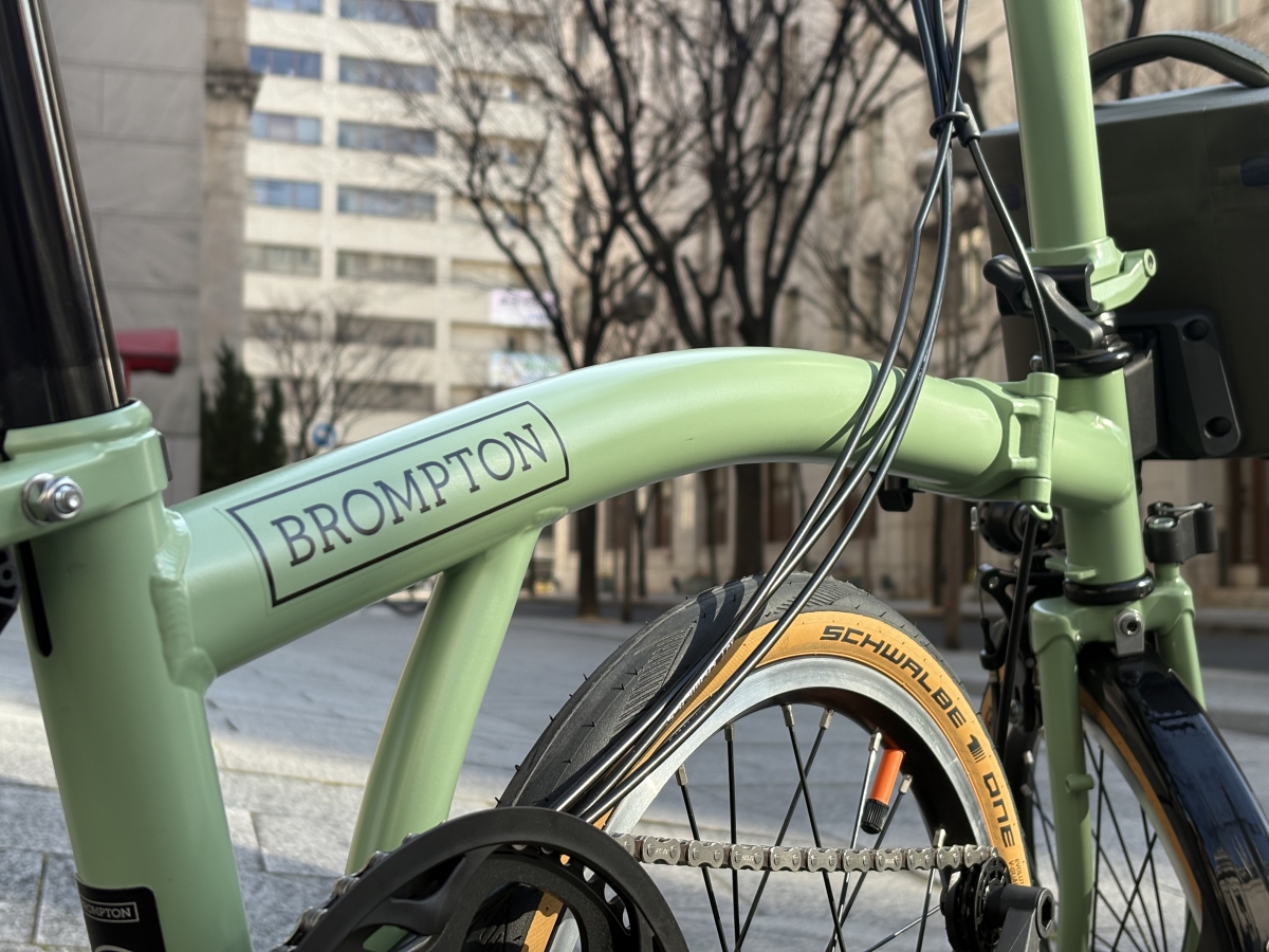絨毯の上を走る感覚。 路面の細かいザラつきや小さなひび割れを、タイヤ自体が「フワッ」と吸収してくれます。スチールフレームのBROMPTON特有のしなりと相まって、まるで上質なセダンのような乗り心地になります。