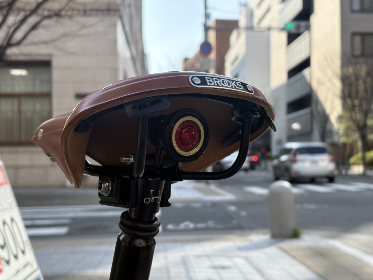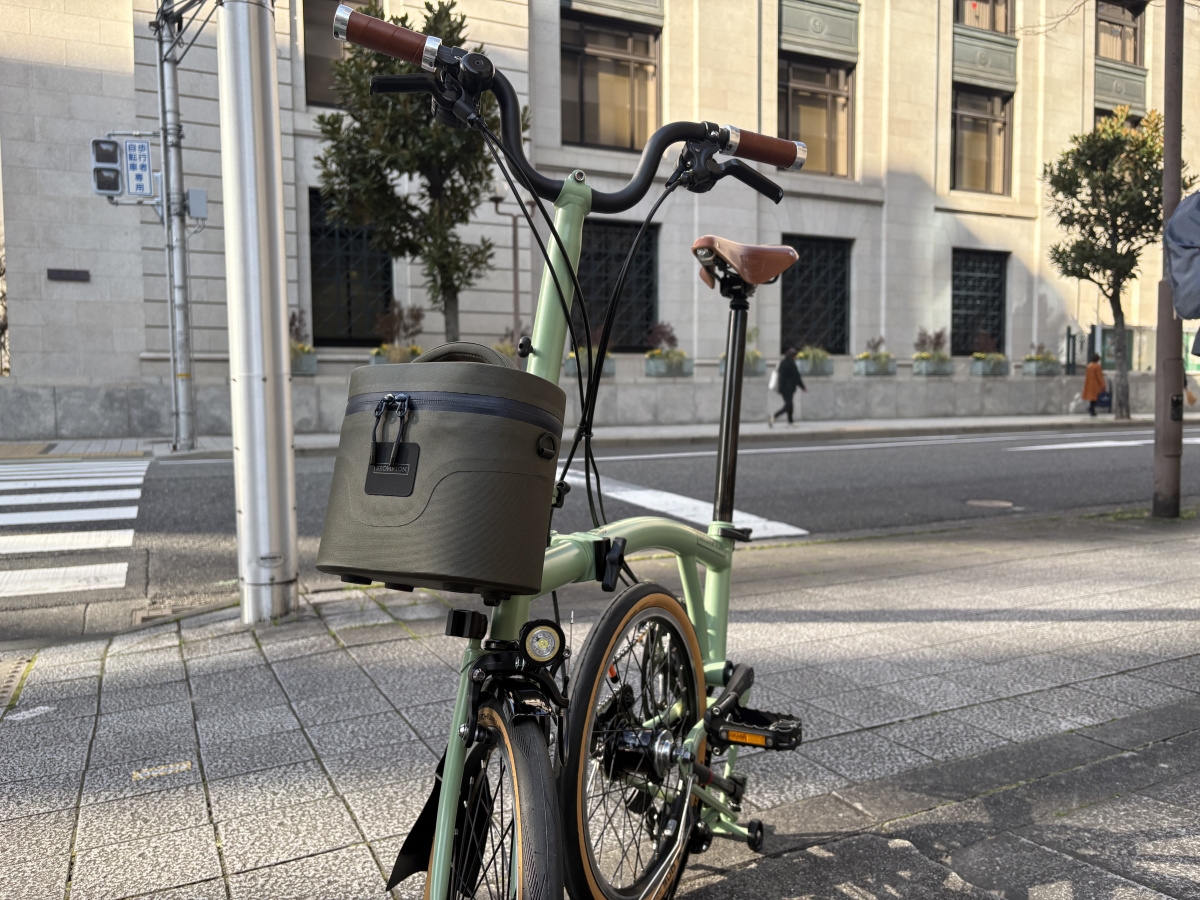 「付けっぱなし」でも様になる 。小ぶりなので、折りたたみ時にも干渉しにくく、日常の「足」として使うなら付けたままでも全く邪魔になりません。