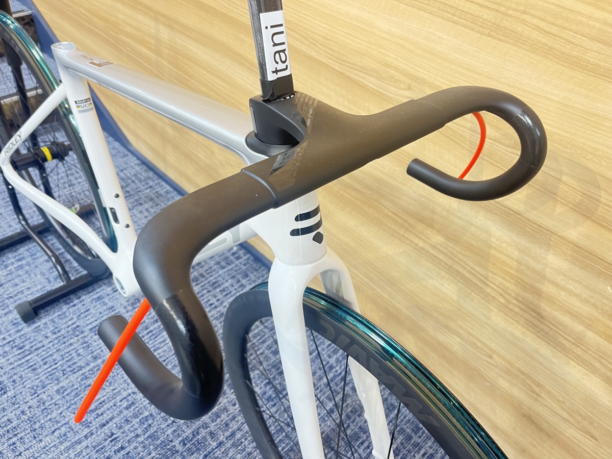 メーカー取り寄せになってしまうと、別途オプションになってしまいますが、店頭在庫分はミドルグレードのフレームセットでは珍しい、一体型ハンドルが付属します。一体型ハンドルは単体で購入しようとすると、10万円ほどするのでハンドルが付いてくるのはとてもお得なポイントです。また近年のロードバイクのトレンドであるワイドタイヤ(最大34c)に対応し、UDH(ユニバーサルディレーラーハンガー)が採用されている為、万が一のハンガー交換でも部品が手に入りやすく、乗り心地、整備面でも快適かつ安心です。