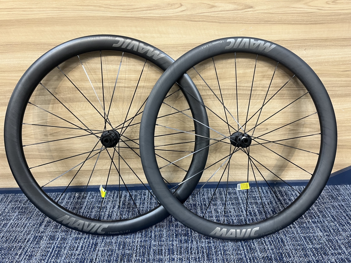 今回は、FALCNがセカンドグレードのフレームで硬すぎない程よい剛性感が特長なので、その特徴を伸ばす形でMAVICの万能セカンドグレードホイール、COSMIC SL45 CL DISCを組み合わせてみました。