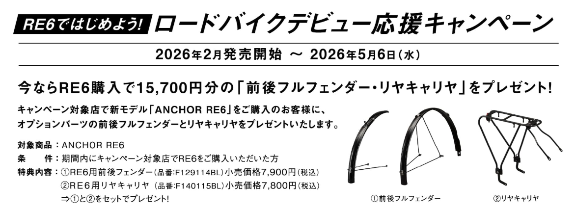 RE6ご購入で前後フルフェンダーとリアキャリアの15,700円分をプレゼント!