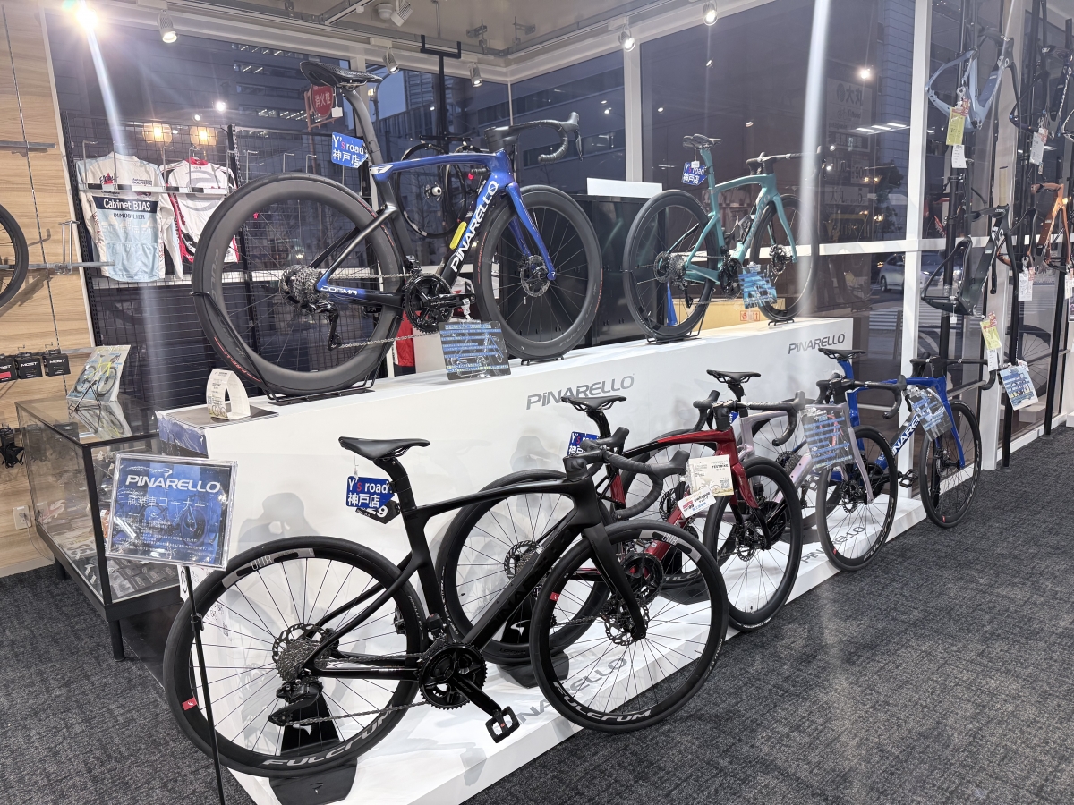 ワイズロード神戸店のPINARELLOルームにはPINARELLO試乗車も沢山ご用意があります。