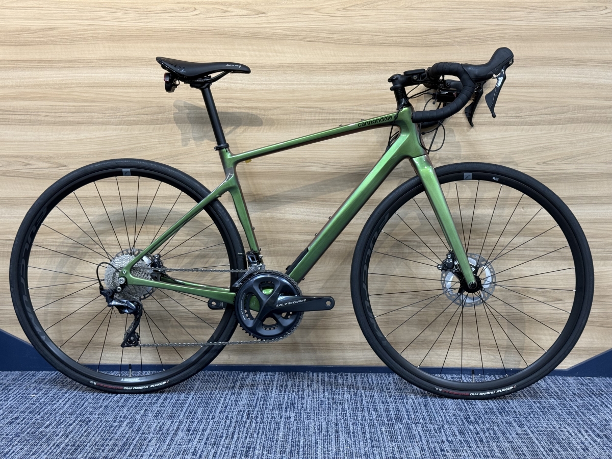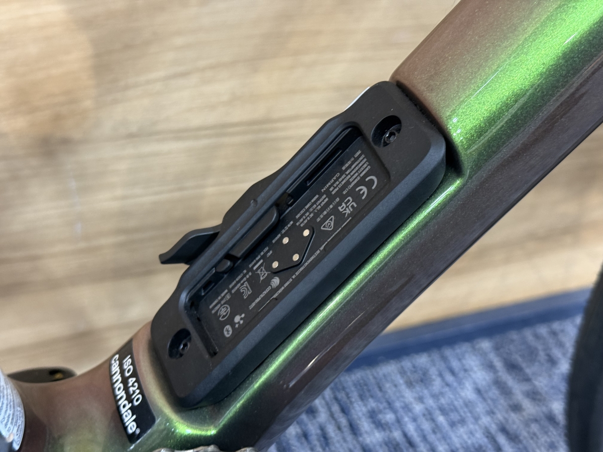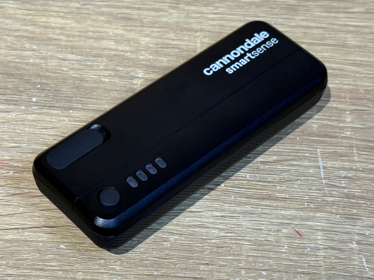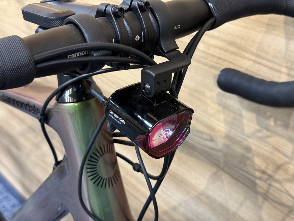 CANNONDALEのエンデュランスバイク『シナプスカーボン』。ロードバイクでは基本別で取り付けるライト類を標準装備し、専用のバッテリーで管理を行うスマートセンスというものを搭載したモデルです。