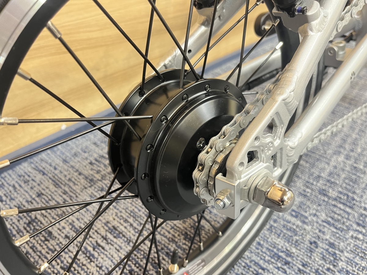 モーターは後輪ハブについており、いわゆる後輪駆動タイプになっています。ギアの変速はなく、アシスト機能はオンオフのみとシンプルな仕様になっているので、アシスト機能で迷うことはありません。「モードが切り換えれないのか」と残念に思う方もいると思いますが、車体が軽量なためパワー不足は感じません。走行距離は最大30㎞となっており、こちらも家から駅までの往復など街乗りをする上で十分な走行距離を有しています。