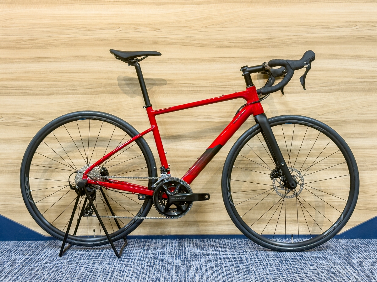 ・高品質なアルミフレーム:上位モデルゆずりのカムテール形状(空力性能)と、振動吸収性の高いカーボンフォークを採用。