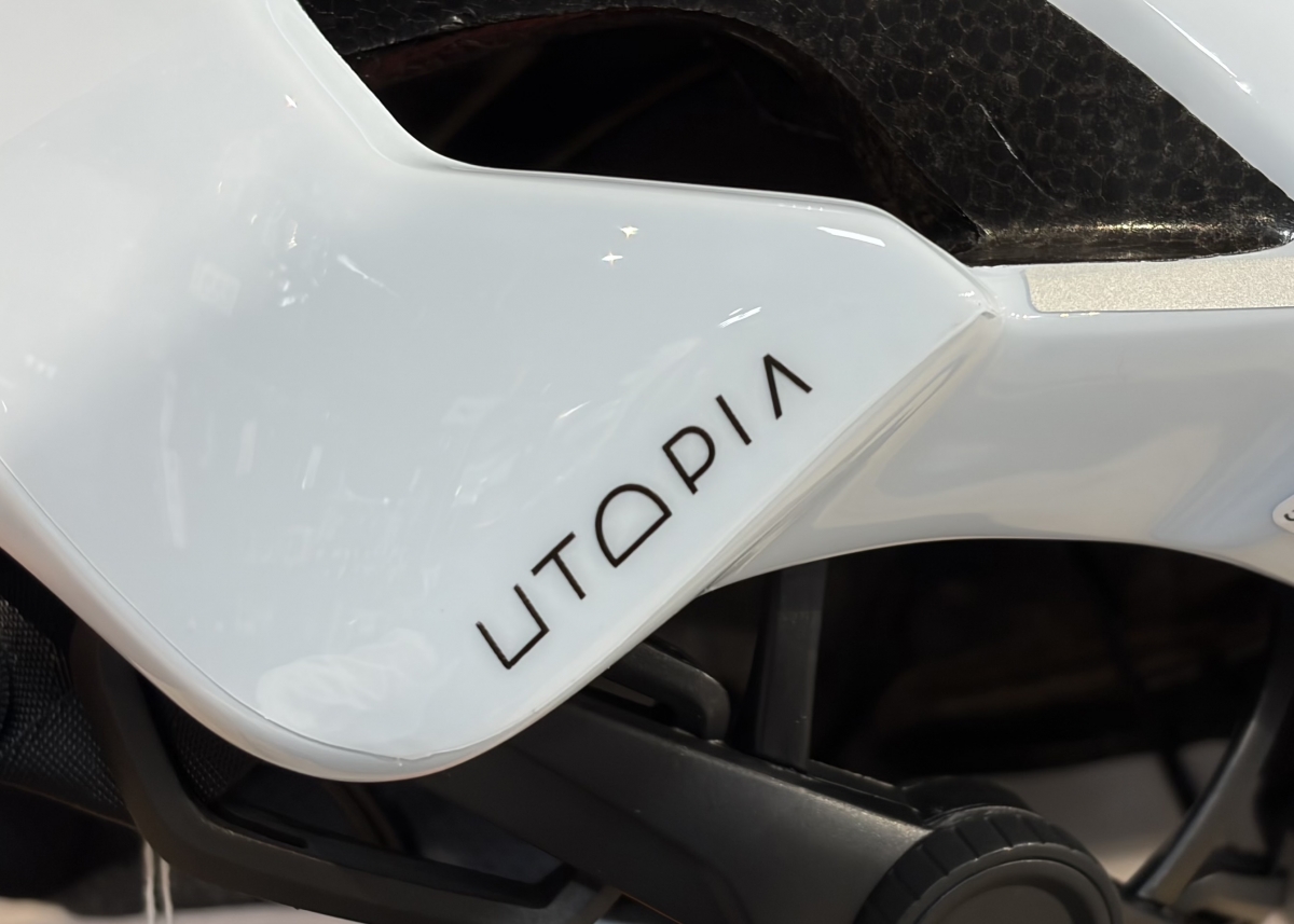 昨今のレースの高速化に伴い、各社空力特性に優れるヘルメットを出しており、コチラの「UTOPIA」もそのうちの一つになります。