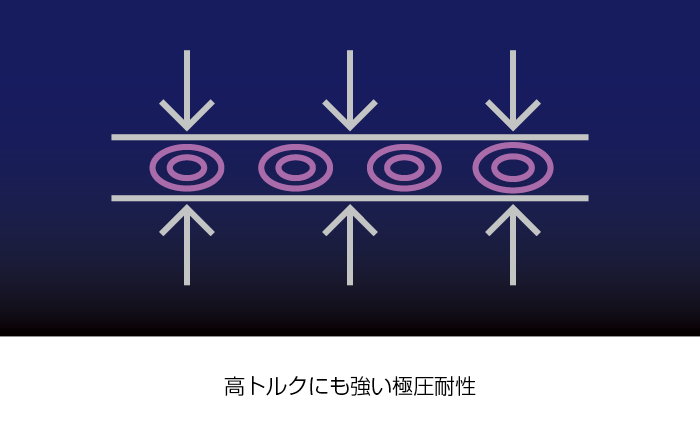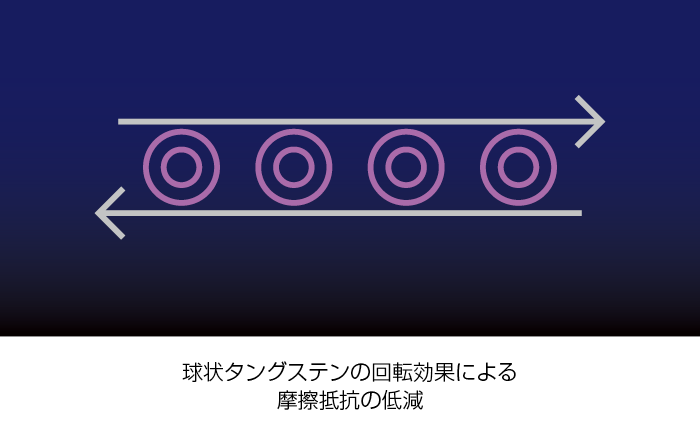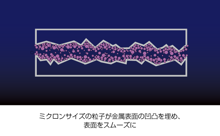 金属の微細な隙間に入り込んでベアリングのように作用し摩擦を大幅に低減します。