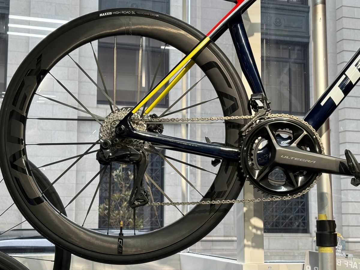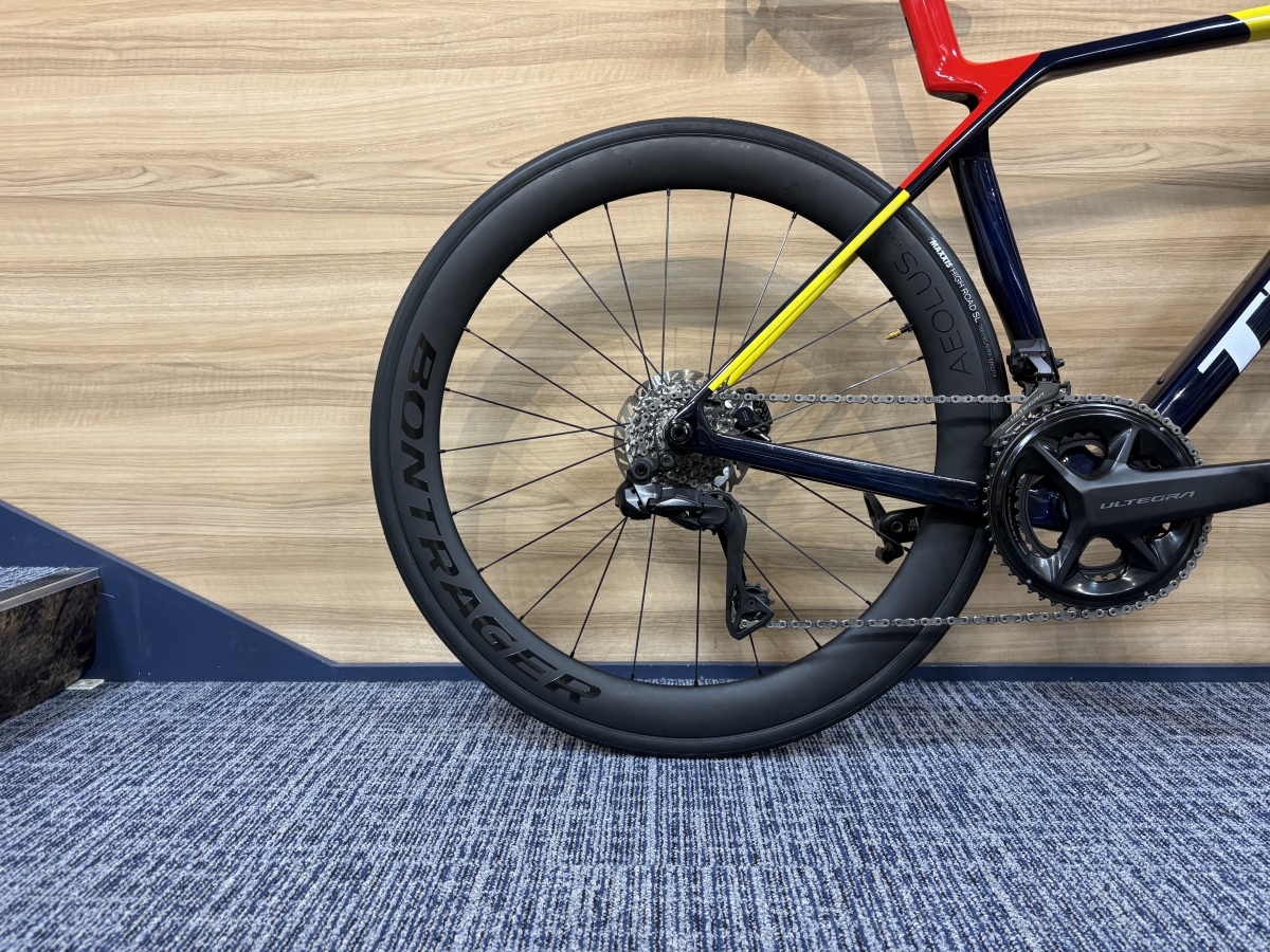 い、いかつい。。。。スポークも高弾性カーボンスポークになっているため非常に印象としては強面な印象^^