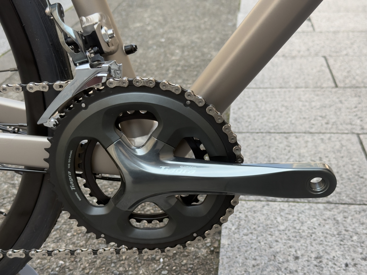 クランクは50-34を採用、インナーに34があるおかげでどんな急勾配な坂にチャレンジ出来ちゃいますね!