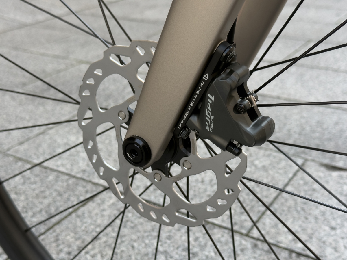 ブレーキも油圧のディスクブレーキを採用しているので、雨や下り坂などいろんなシチュエーションでしっかり止まれるので、リムバイク乗ってる方からすると制動力の差に驚きが出るレベルだと思います。
