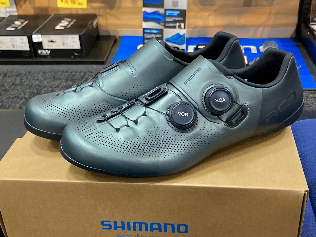高性能かつ高いコスパで人気のシマノのSPD-SL用上級グレードモデルRC703 限定カラーのセージグリーンが入荷しました。