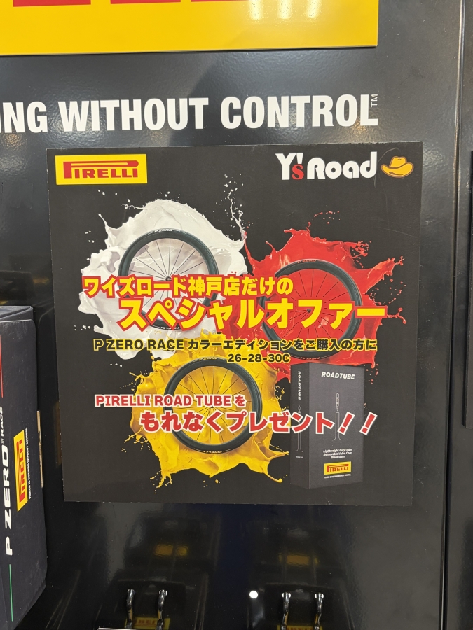 なんと今、神戸店限定でP ZERO RACE カラーエディションをご購入の方にPIRELLI ROAD TUBEをもれなくプレゼントするというキャンペーンを開催しています!