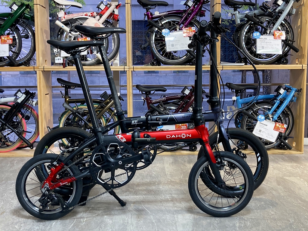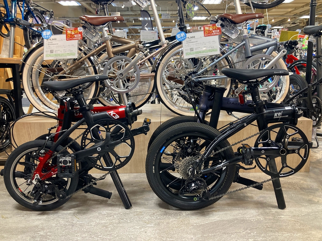 お休みの日の外出に持って行くのがメイン・毎日電車に持ち込んで輪行通勤に使うという方はコンパクトさ重視のK3がオススメですが、普段はあまり折りたたまず、たまにお休みの日に電車で輪行したいという方には安定感があって乗りやすいK9Xがオススメです。