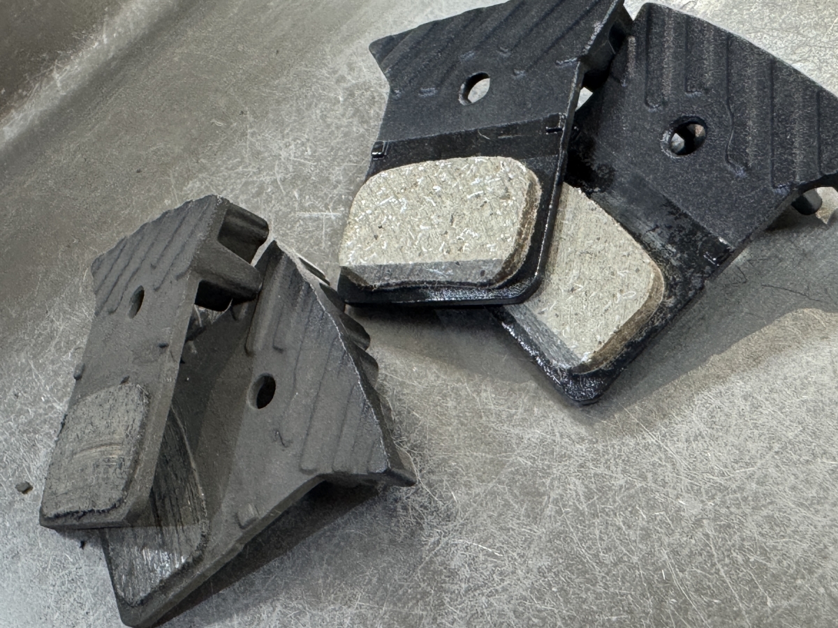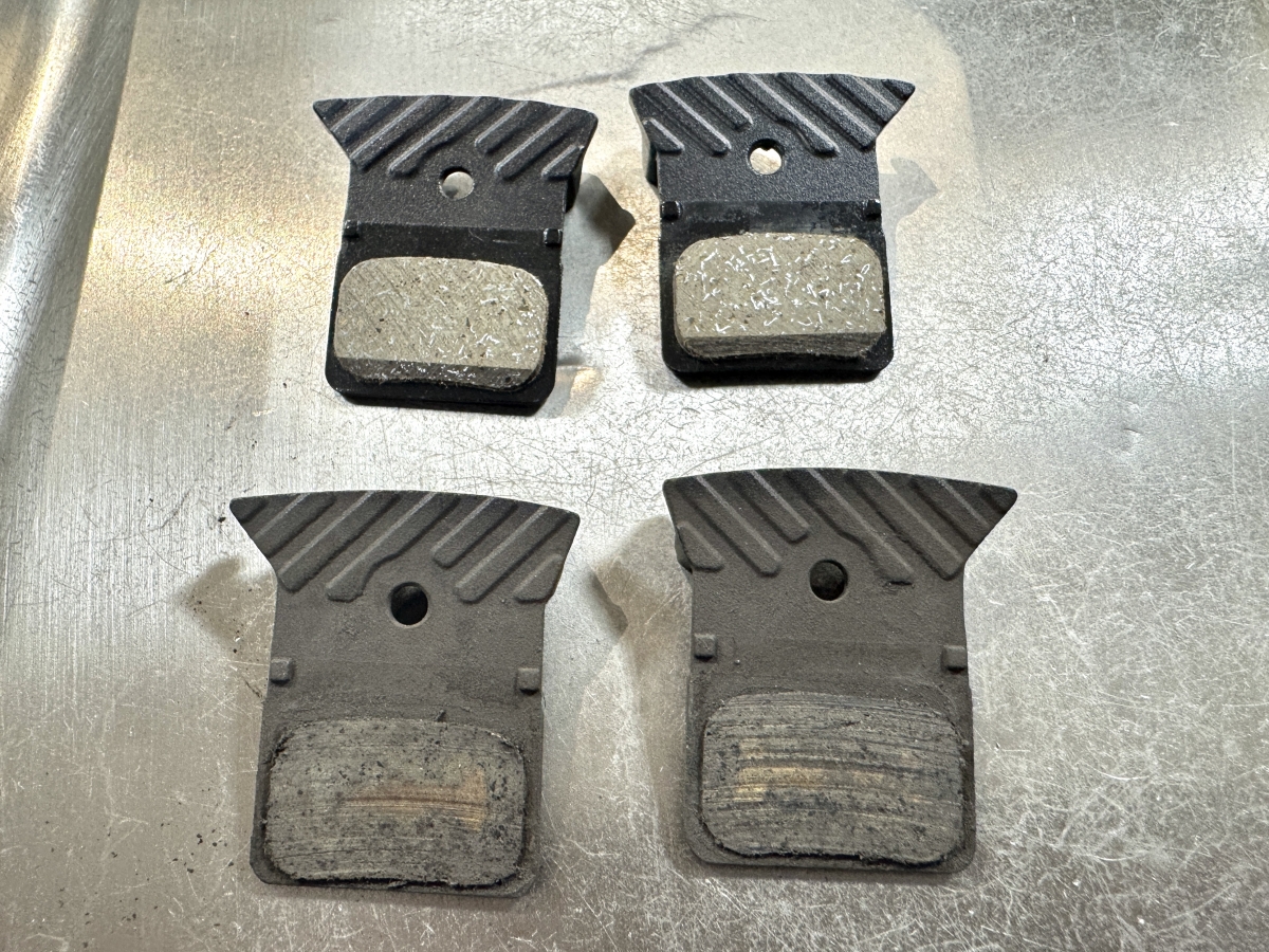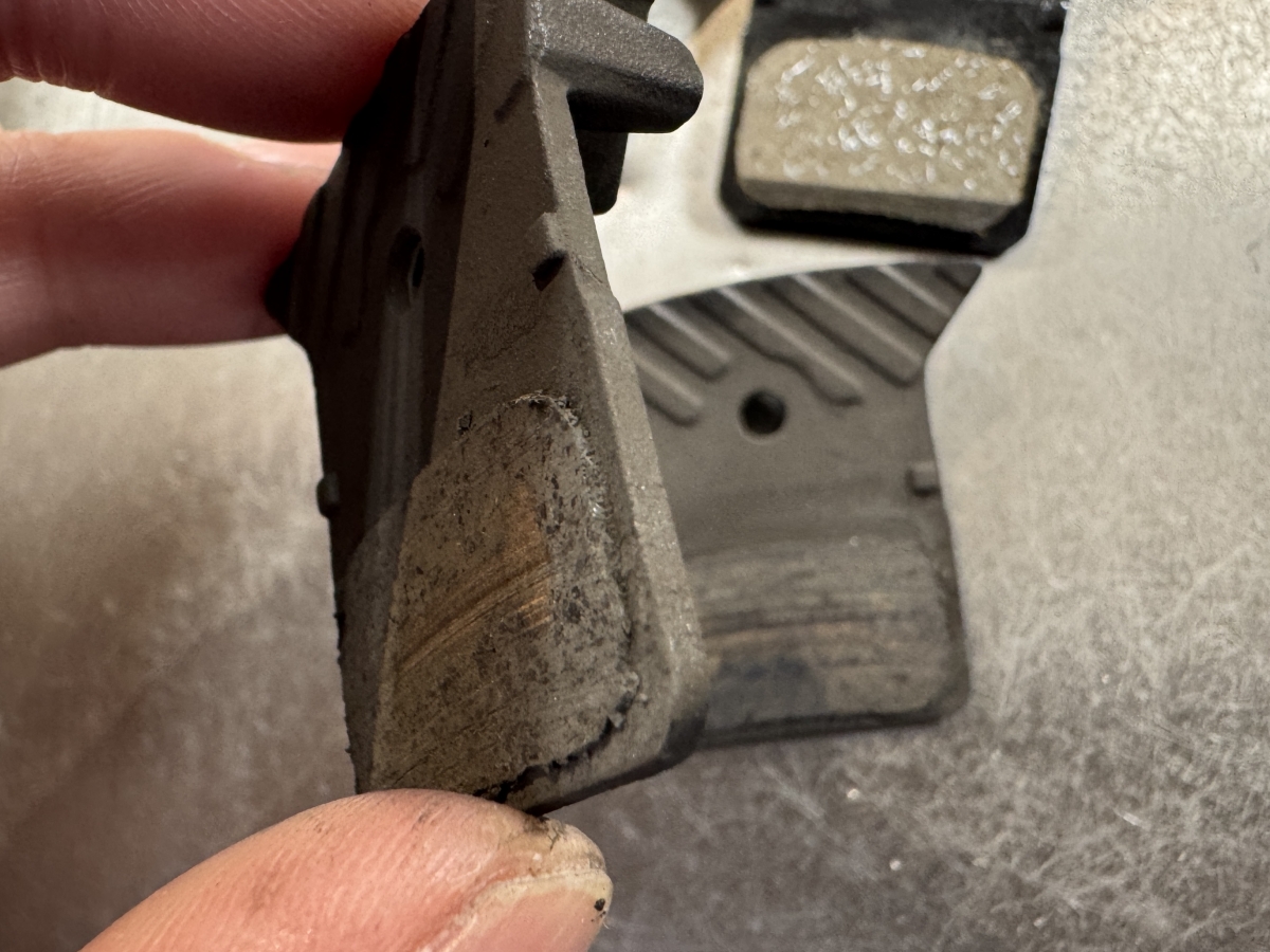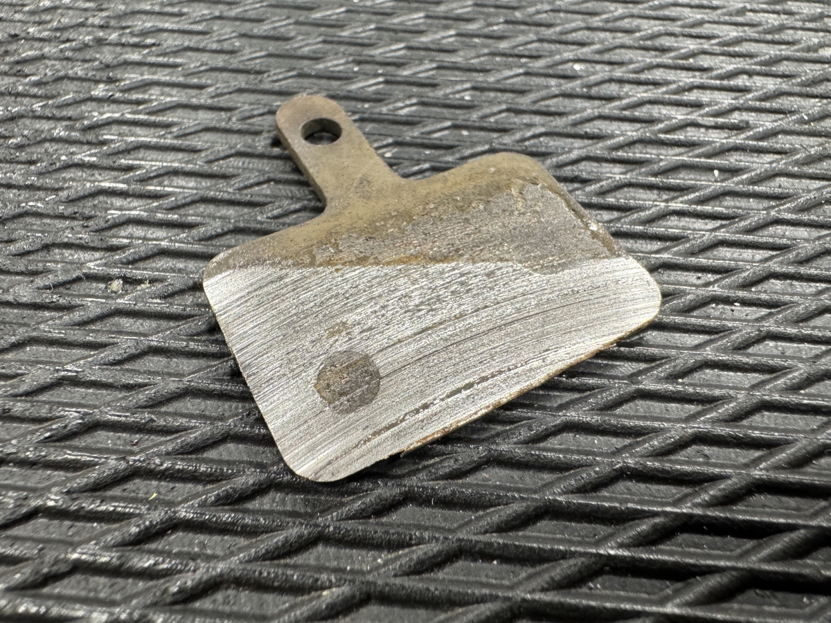 こちらはパッドレジン部分からさらに削れてしまったブレーキパッドです。