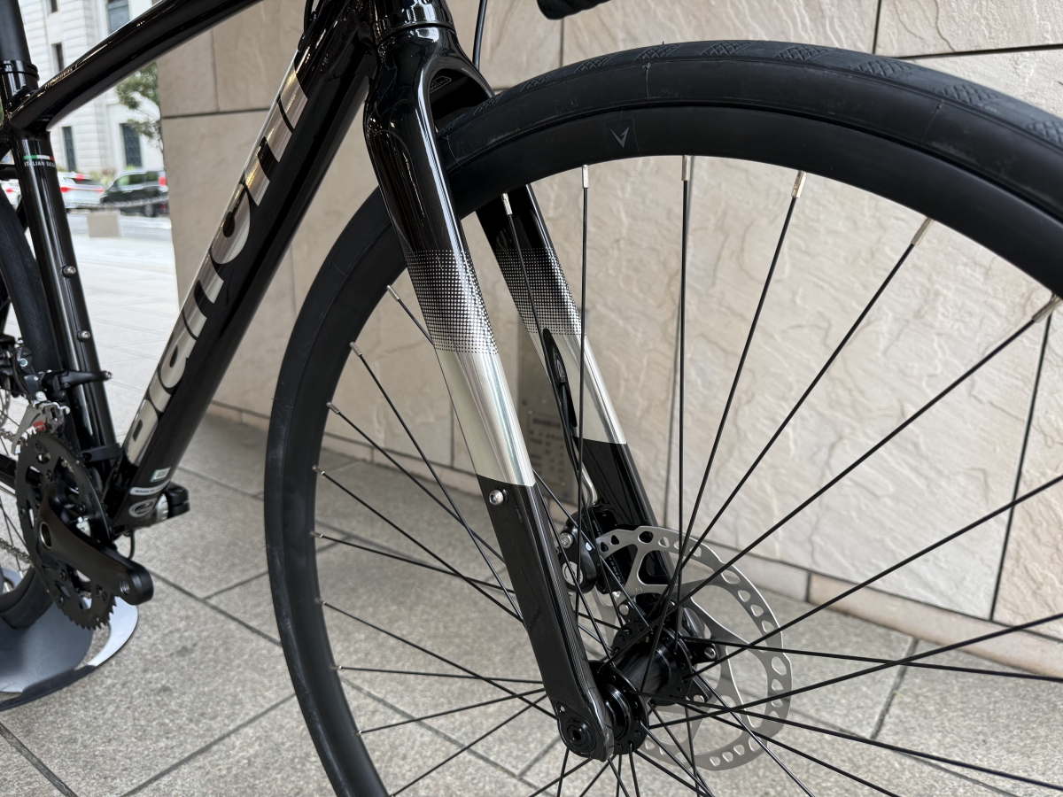 フロントフォークはカーボンになっており振動吸が高まり、軽量化だけでなく乗り心地向上が期待できます。