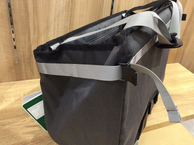 サイドのベルトで開き幅は調整可能で、走行中にバタつかないように調整できます。