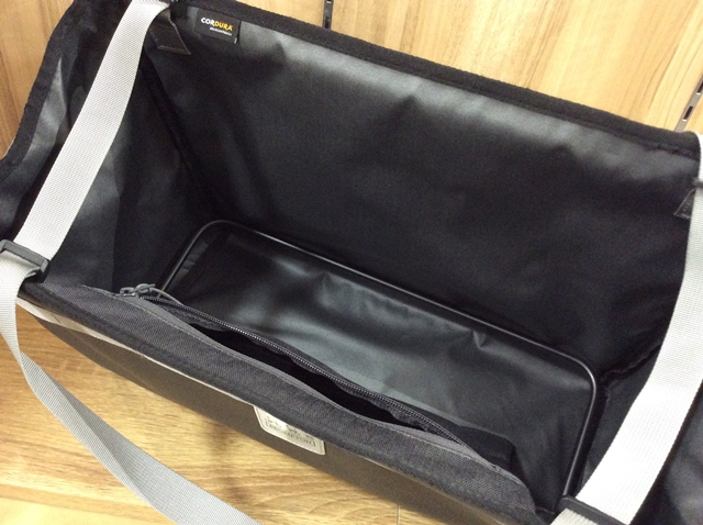 内部は広々としていて、小物が入れられるファスナー付きのポケットが用意されています。