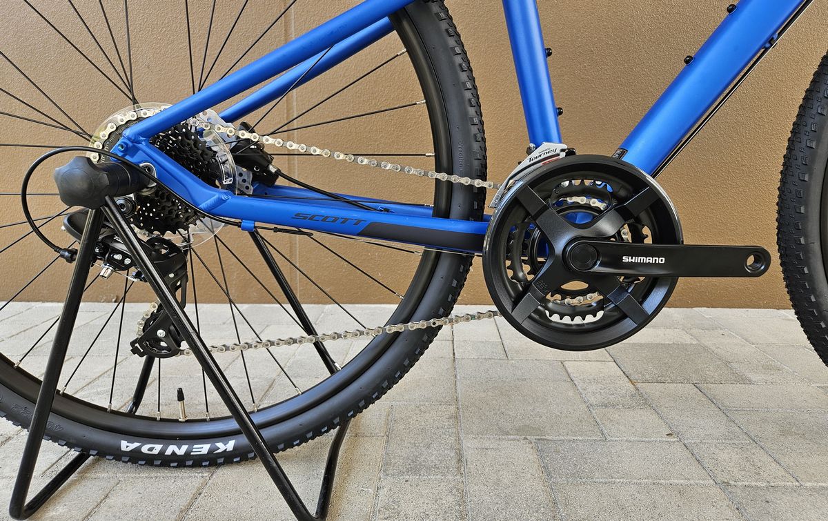 700×45cとクロスバイク界隈ではかなり太いタイヤを装備。ある程度の荒れ地も走行できちゃう、クロスバイクの中でもMTBに近いシルエットをもっています。
