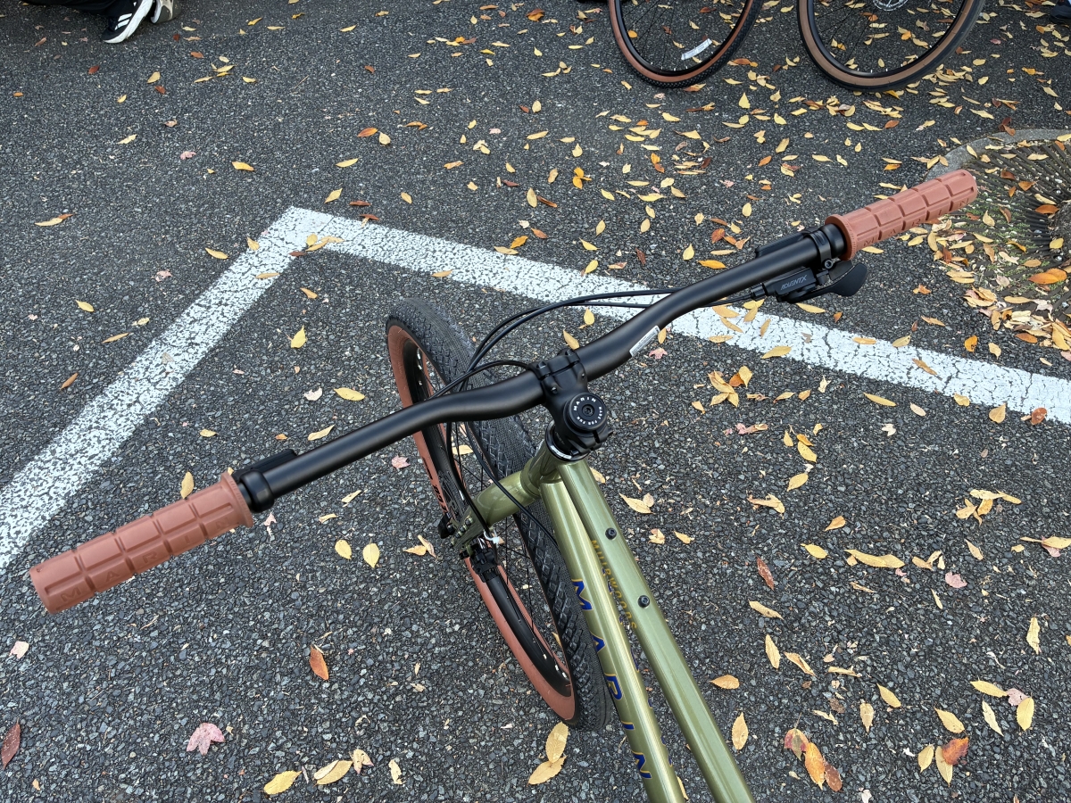 乗っているとこの写真は撮っていないかったですが、実際乗った感じはマウンテンバイクに近いハンドル幅と、タイヤボリュームでクロスバイクというより、サスペンションのついていないマウンテンバイクといった方が正しそうです!