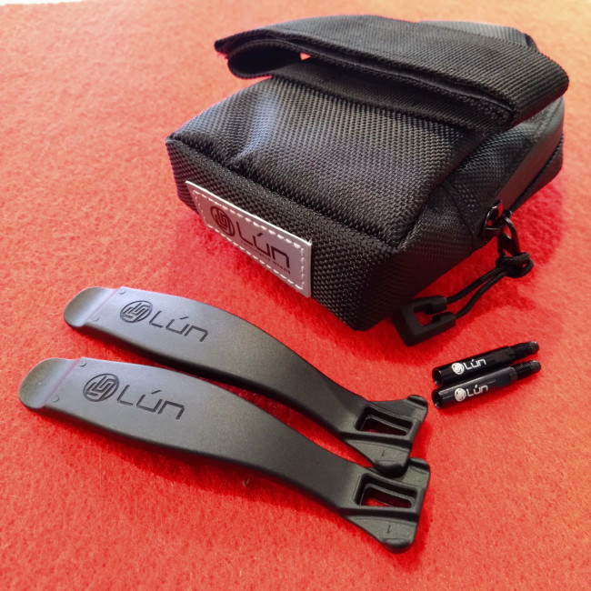 今回のMEGAホイールには、オリジナルサドルバッグ、エクステンダー、タイヤレバーが付いてきます。